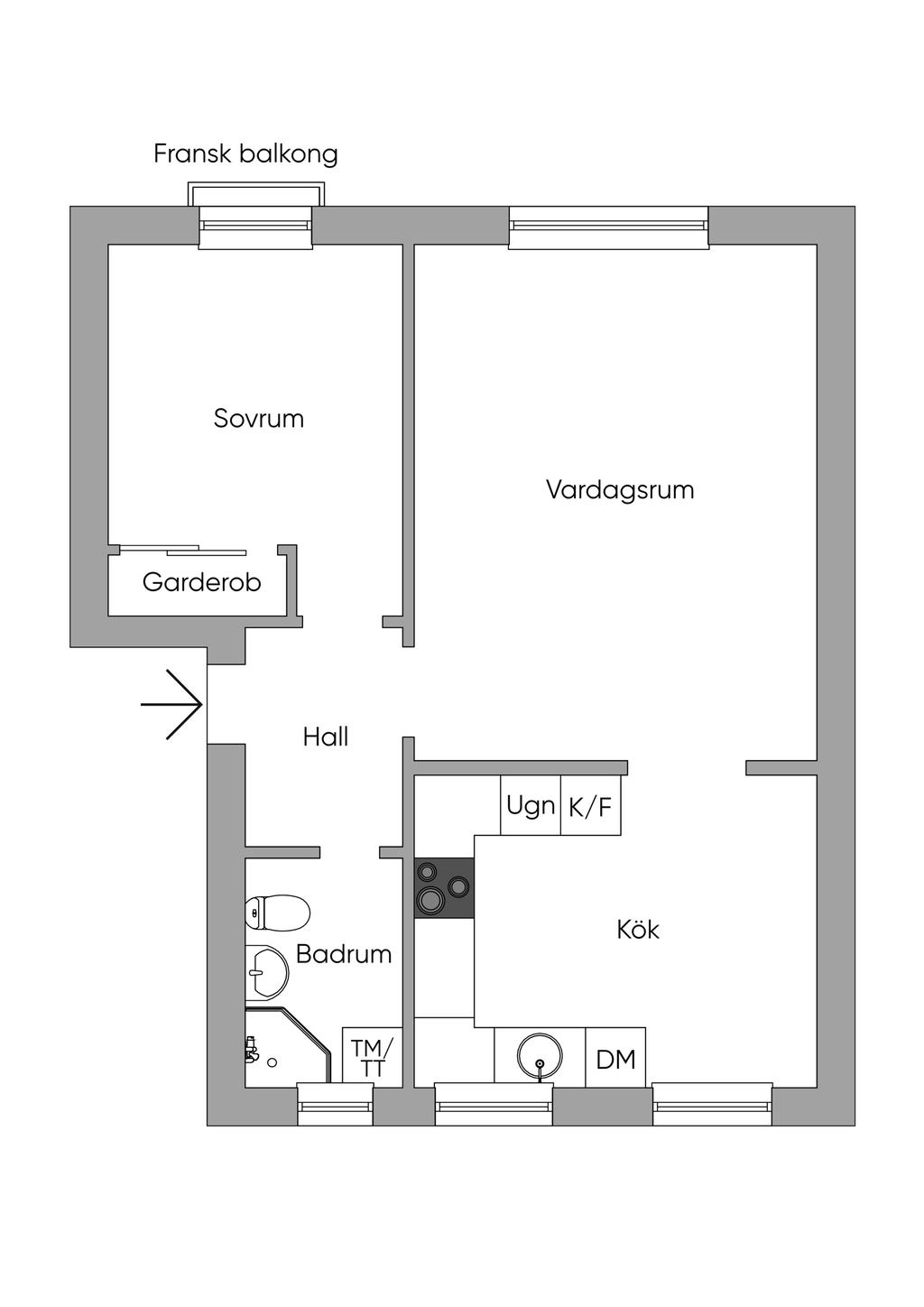 Fin och rymlig tvåa med fransk balkong och fräscht kök!