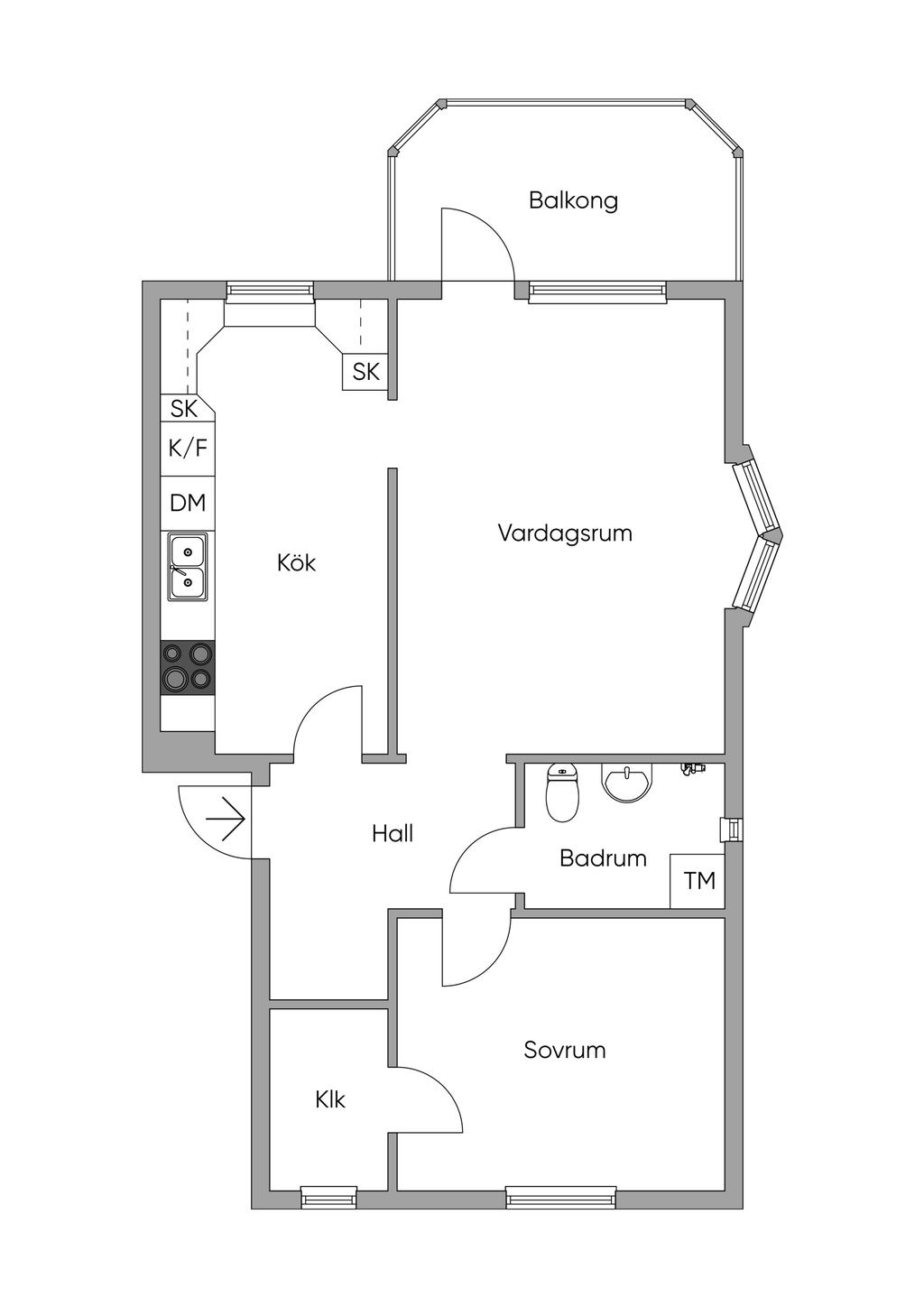 Mycket fin tvåa på andra våningen med inglasad balkong