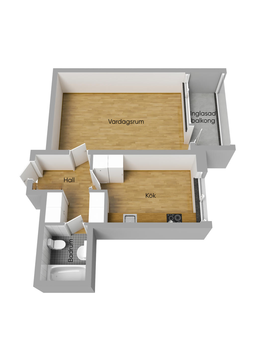 Ljus och trivsam 1:a med stor inglasad balkong i populära Karlstorp!