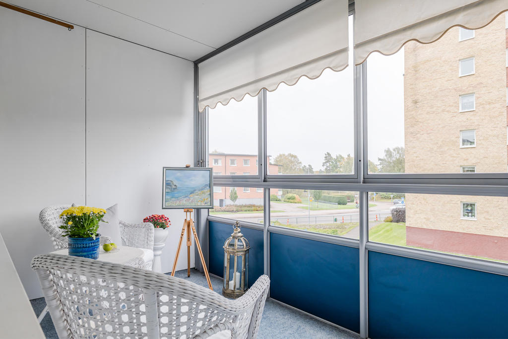 Ljus och trivsam 1:a med stor inglasad balkong i populära Karlstorp!