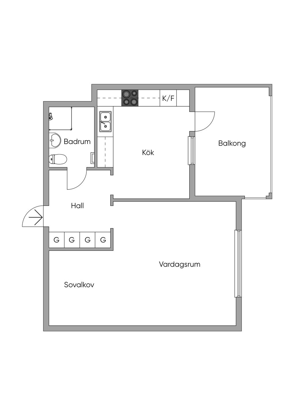 Rymlig 1:a med sovalkov och inglasad balkong!