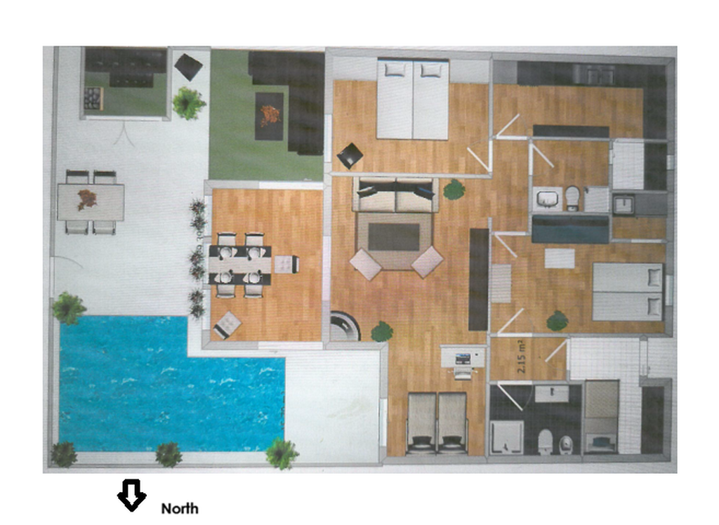 Bostaden har privat pool & bastu, vilket ger en exklusiv villakänsla med full integritet. Carport-parkering på området ingår.