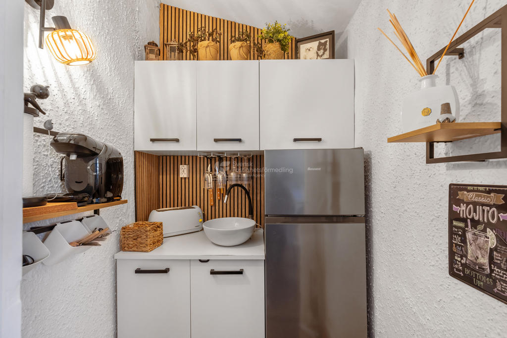 Komforten är genomgående hög med 5 AC-enheter samt en eldstad med gas. Altanen i sydöstlig riktning ger sol från morgon till tidig eftermiddag, och den privata takterrassen erbjuder ytterligare utrymme för avkoppling, sol och umgänge.