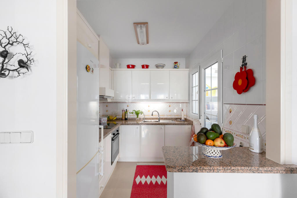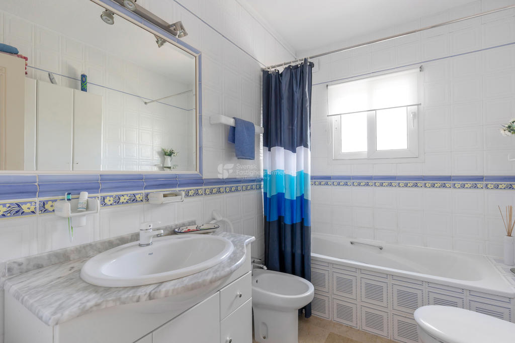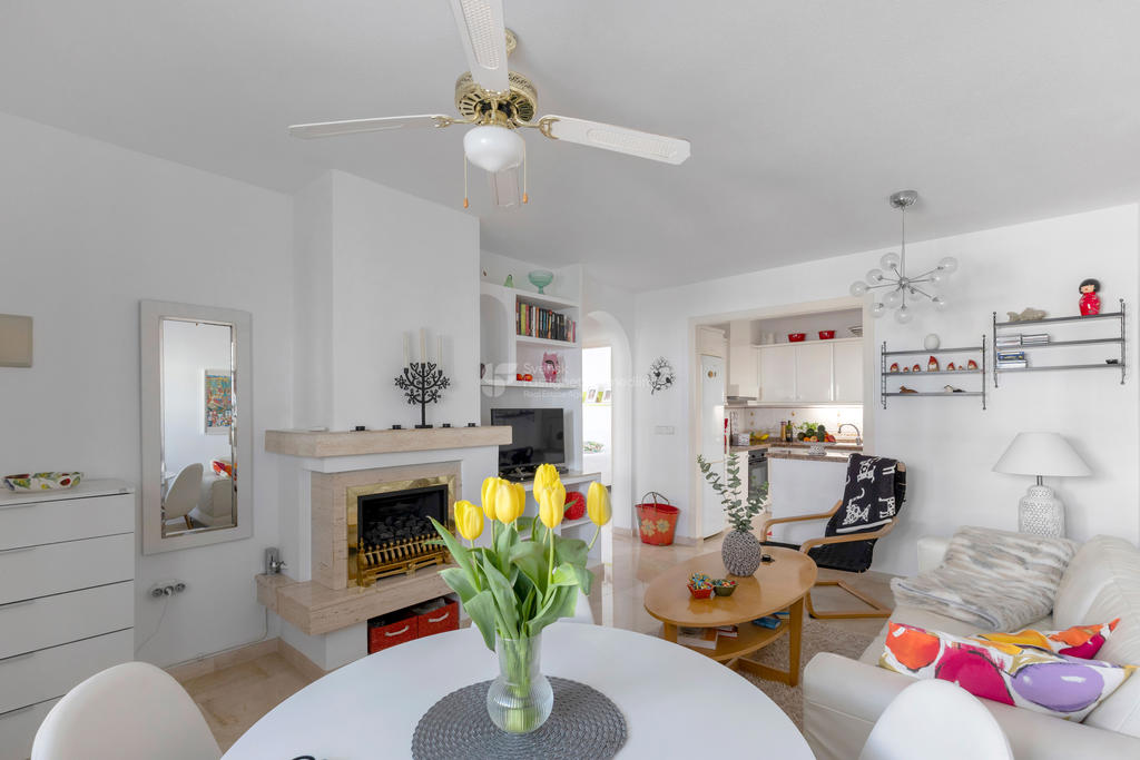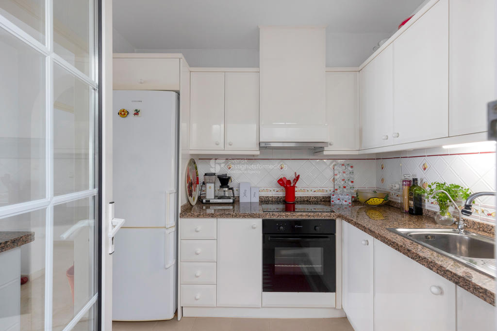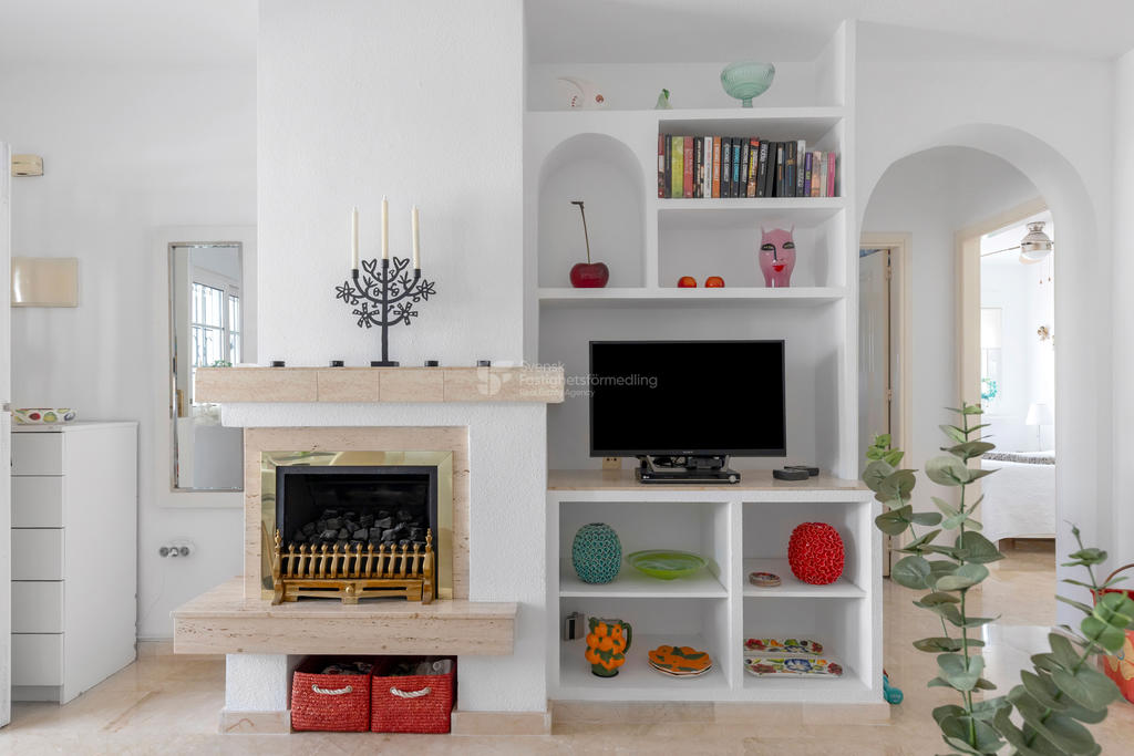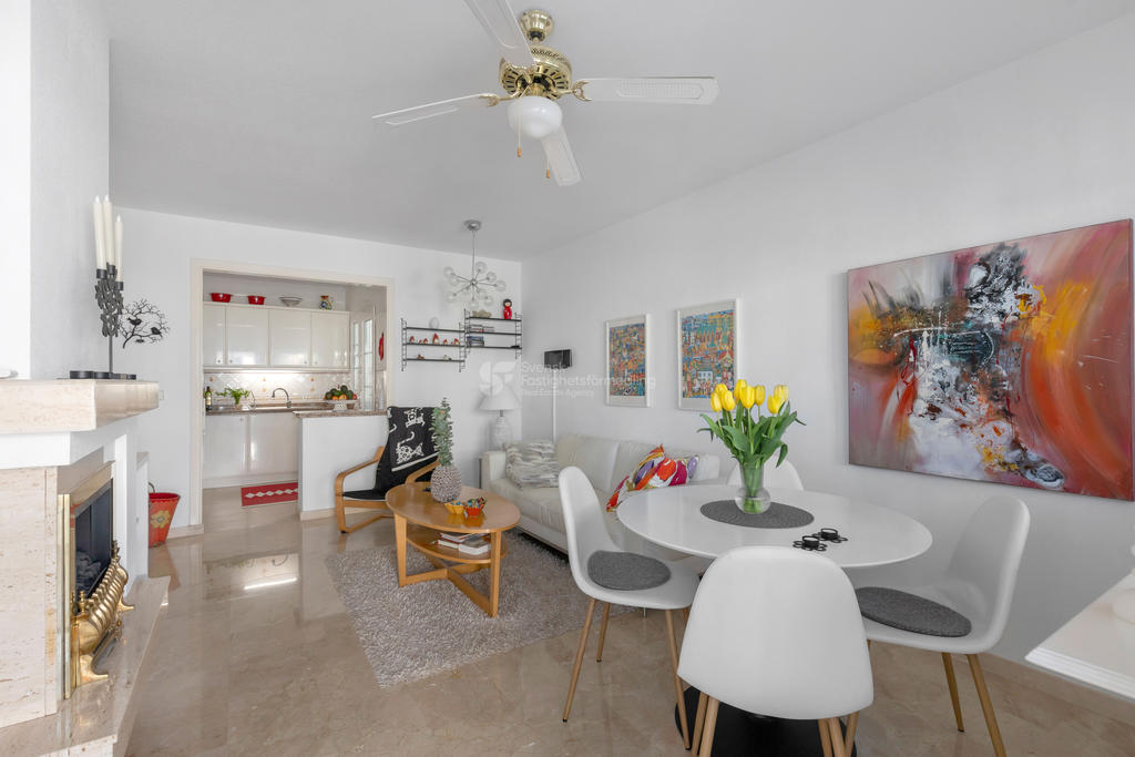 Upptäck ditt drömboende i hjärtat av Playa Flamenca, Orihuela Costa. Detta charmiga radhus erbjuder en unik möjlighet att njuta av det bästa av både semester och året runt-boende. Med fyra rymliga rum varav tre är sovrum, två badrum och en inbjudande takterrass med sol och vacker poolutsikt har du alla förutsättningar att skapa minnesvärda stunder under den spanska solen.