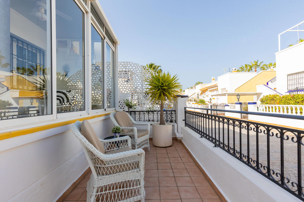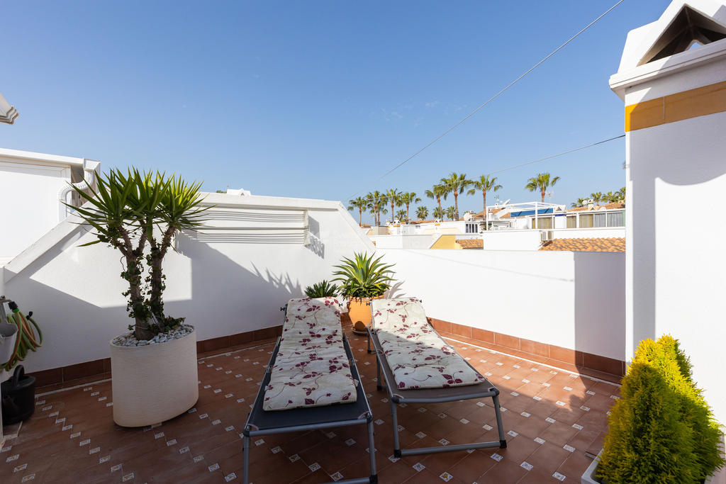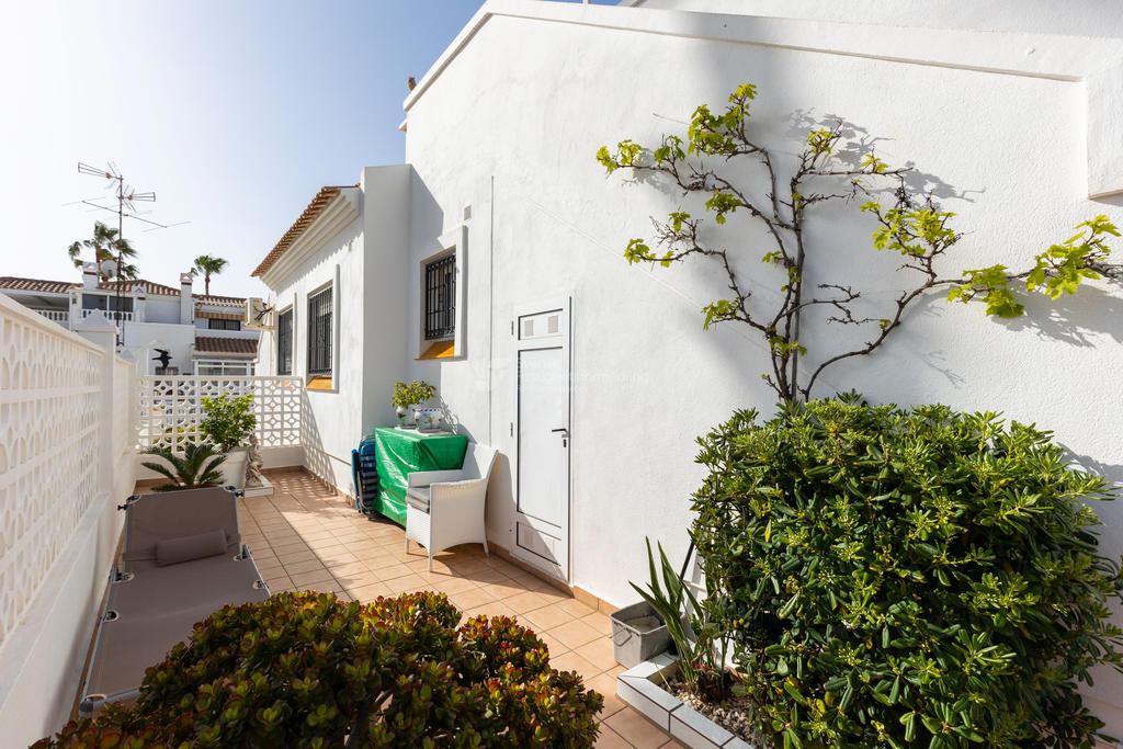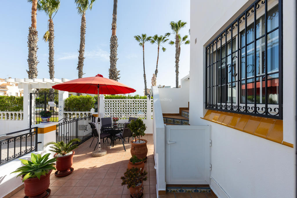 Detta radhus är inte bara en plats att bo, utan en livsstil. Den strategiska placeringen i Playa Flamenca gör det enkelt att ta del av allt området har att erbjuda, samtidigt som du har en privat oas att dra dig tillbaka till.