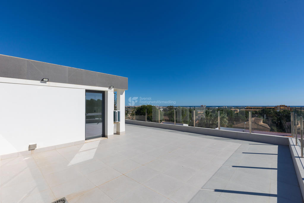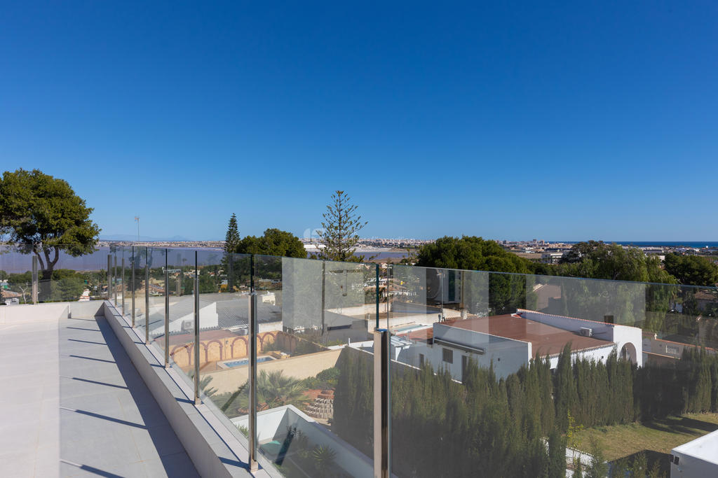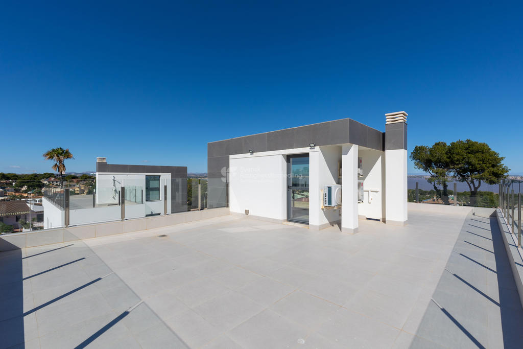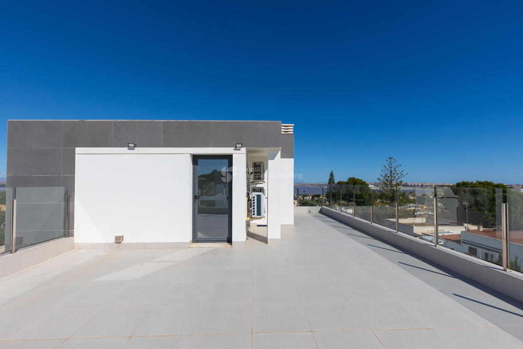 Stor takterrass med panoramautsikt som har utsikt över hela Torrevieja, Medelhavet och de omgivande bergen