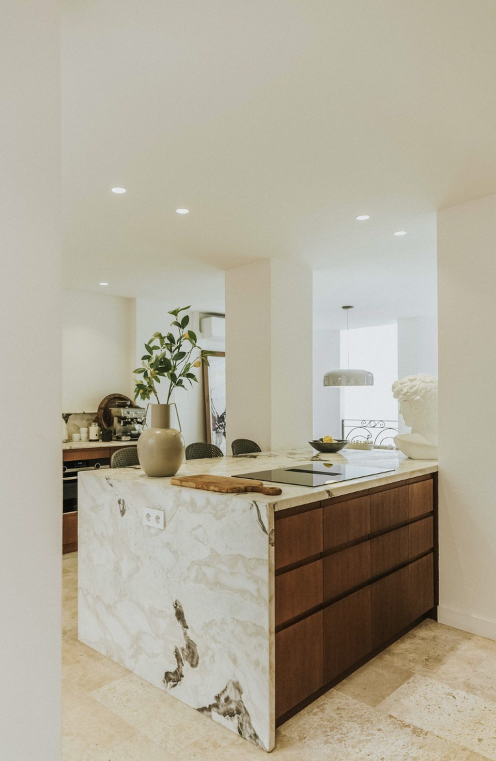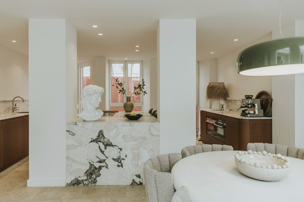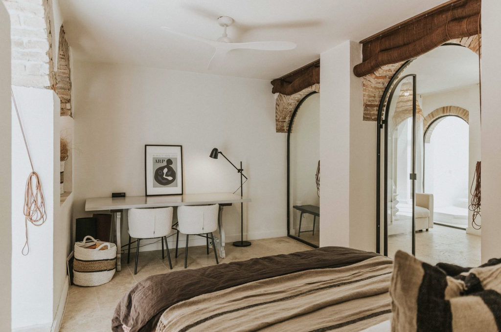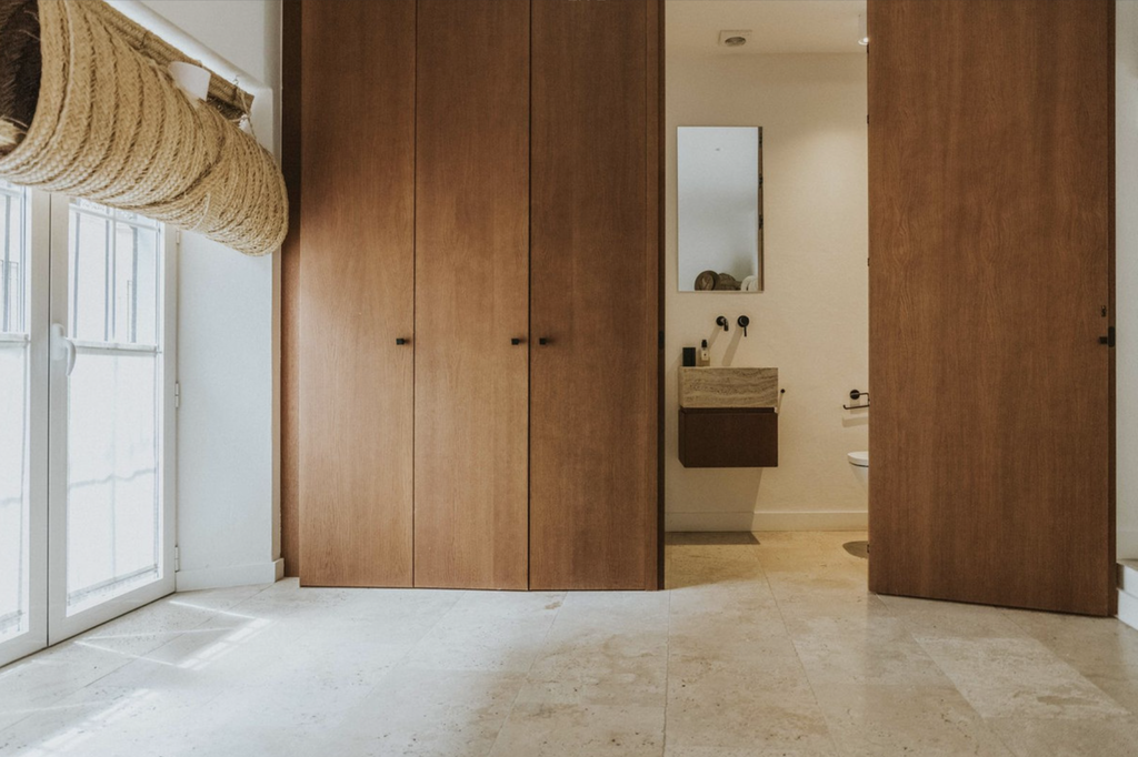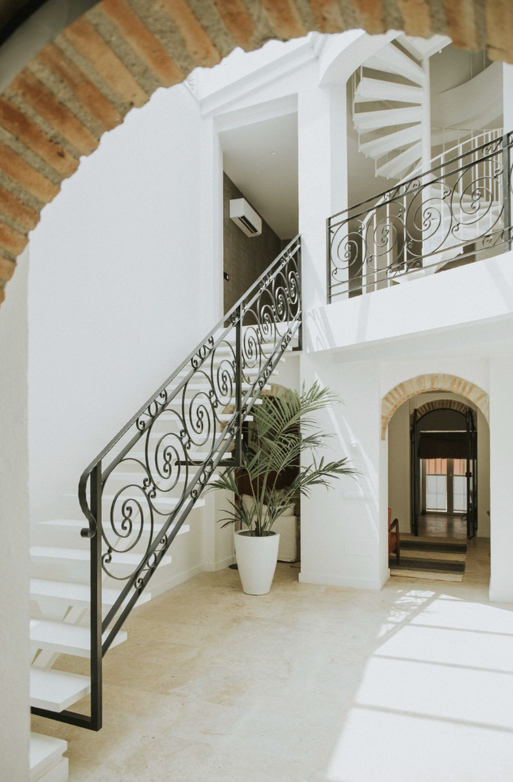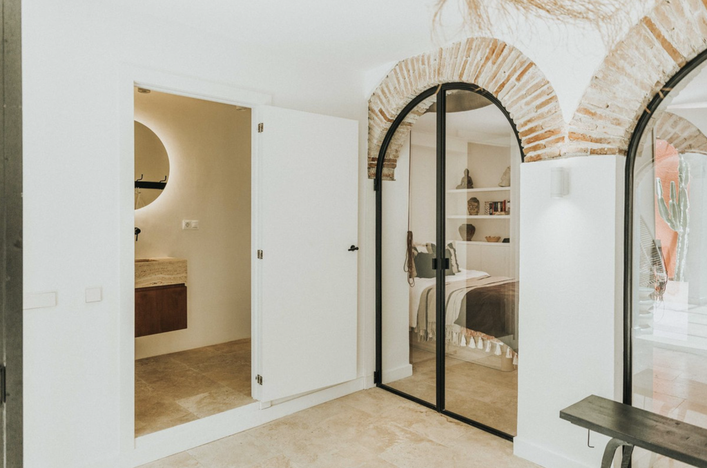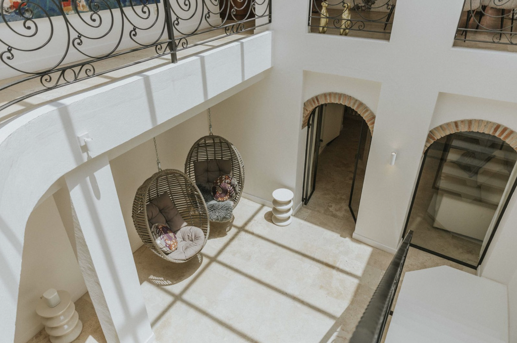 At the centre of the home lies a bright interior patio, creating a tranquil atmosphere and allowing natural light to flow throughout the property. This private courtyard enhances the sense of space and offers a peaceful retreat in the middle of the city.