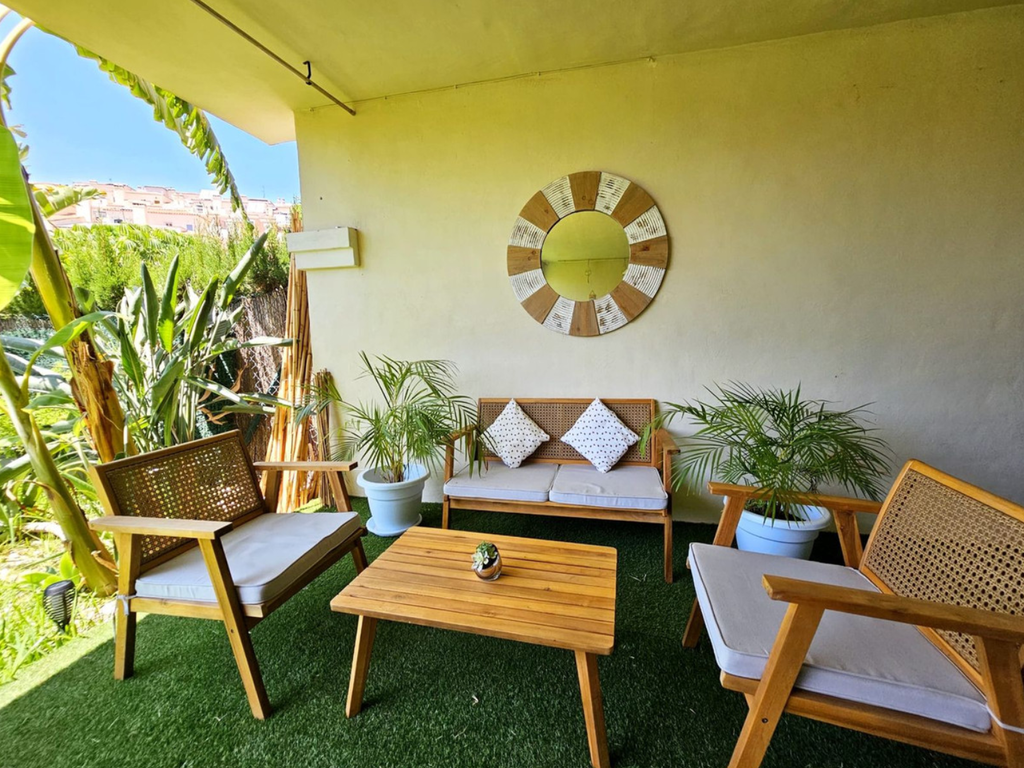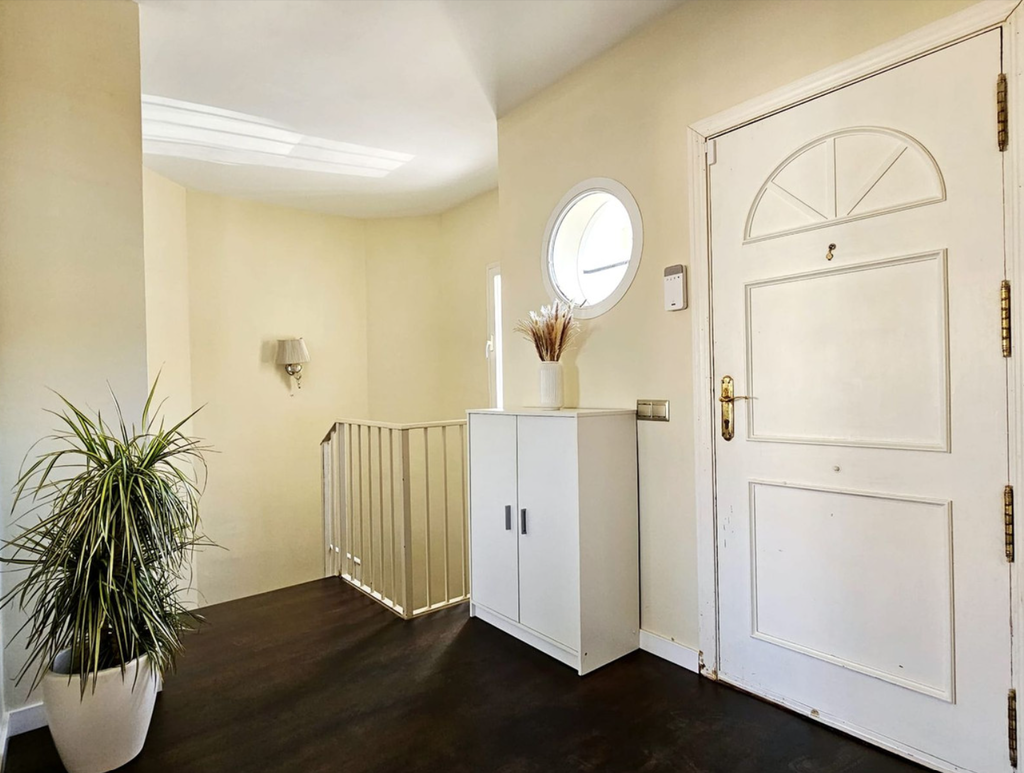 The lower level opens onto a spacious private garden, ideal for entertaining family and friends. This outdoor area includes a barbecue space, making it perfect for gatherings, celebrations, and enjoying the Mediterranean climate year-round.