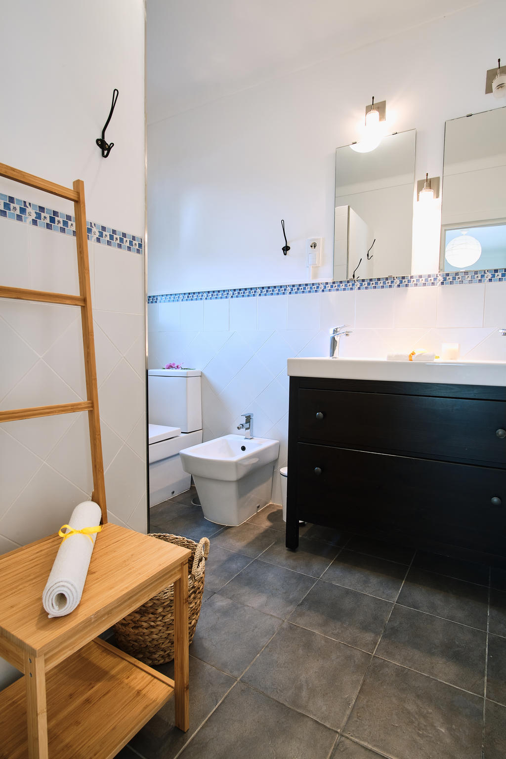 Den nedre delen av huset nås via en separat ingång genom att gå runt huset eller via en extern trappa från terrassen, vilket gör den idealisk för uthyrning eller gäster. Här finns ett stort kök och vardagsrum, två badrum samt fyra trivsamma sovrum med förvaringsmöjligheter. Utanför väntar en lummig trädgård med citron- och bananträd, flera uteplatser och gott om plats för sociala tillställningar under varma kvällar.