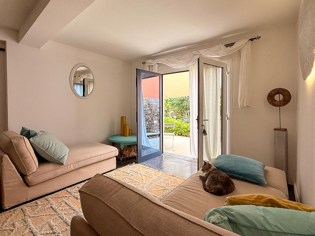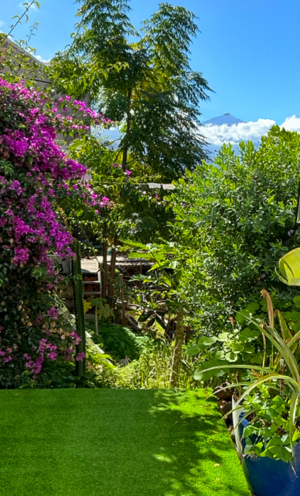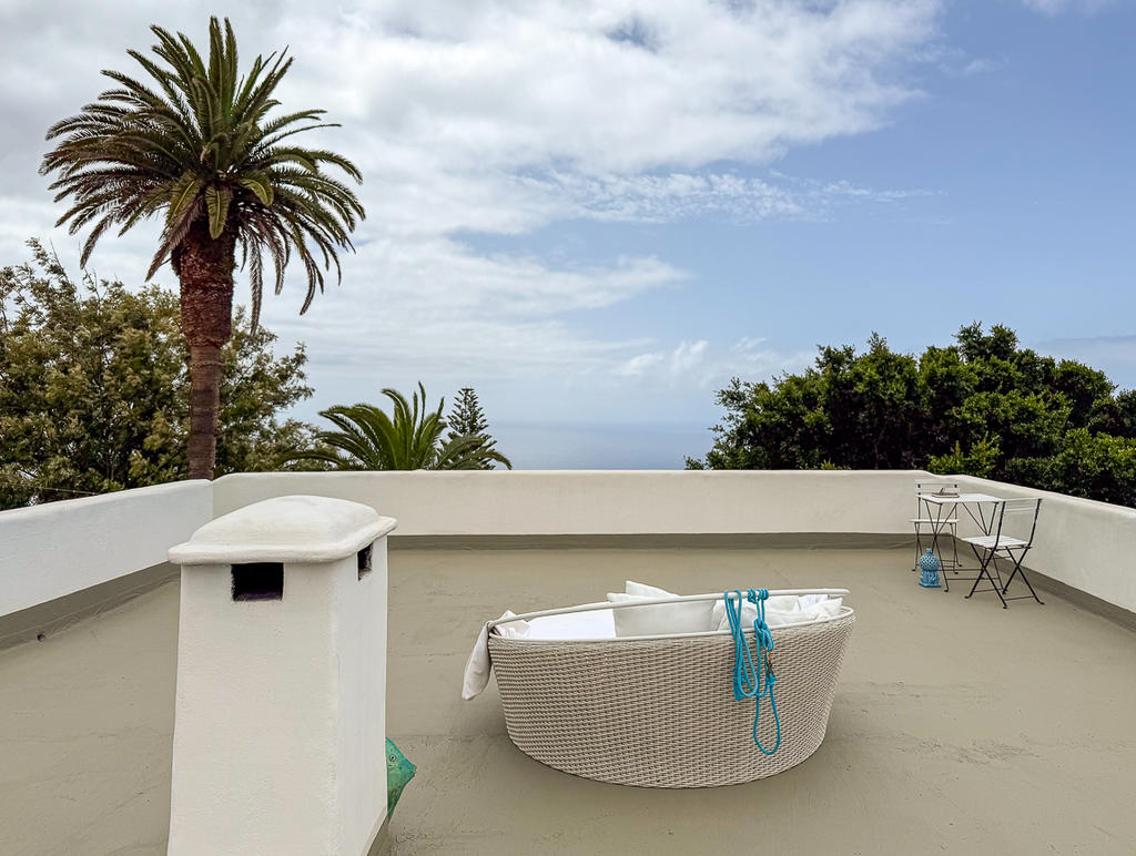 The garden offers several lovely spots to relax – and if you dream of a refreshing morning swim, there’s space to install a pool. Upstairs, there’s also a small room with pre-installation for a sauna – and a window that looks straight out at Mount Teide. Imagine relaxing in the warmth while taking in the silhouette of the volcano.