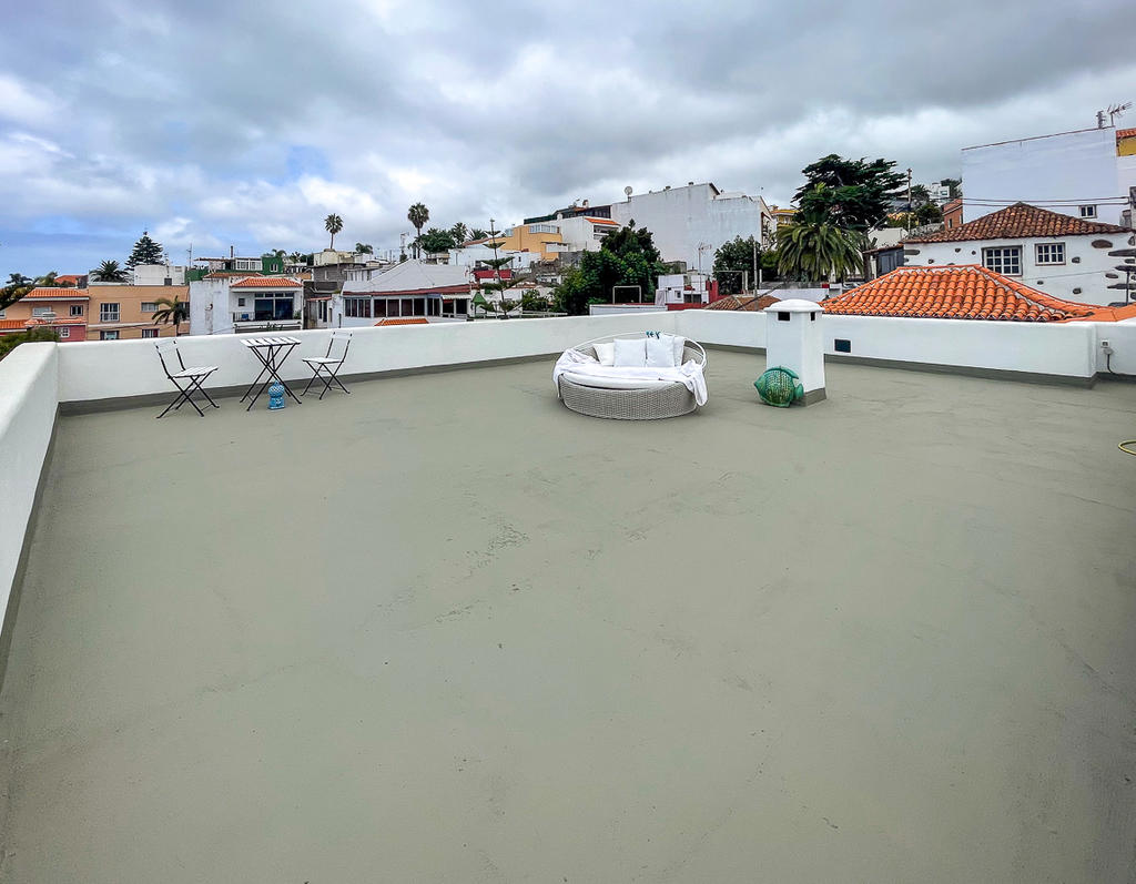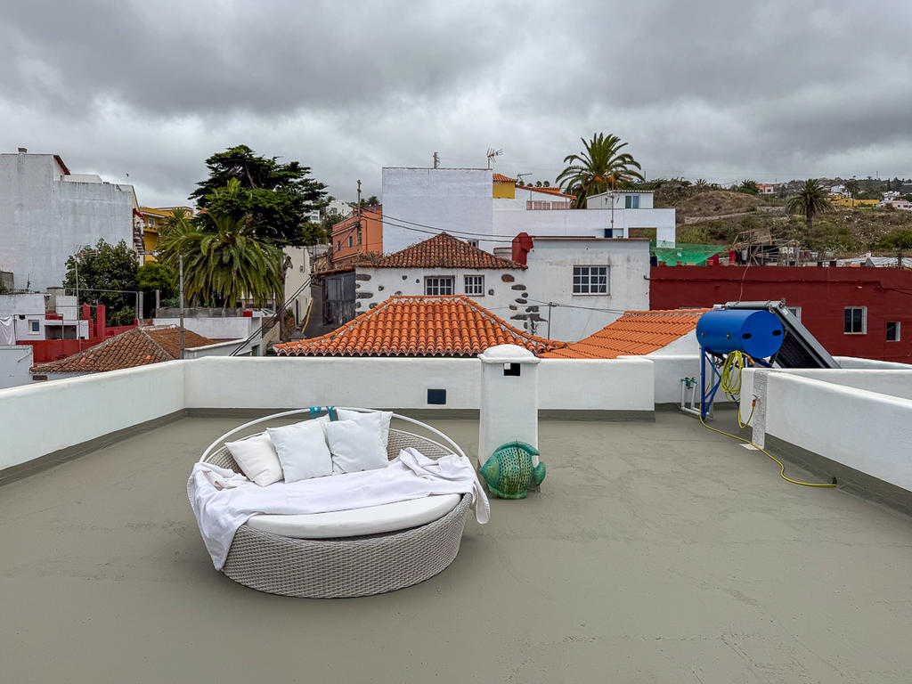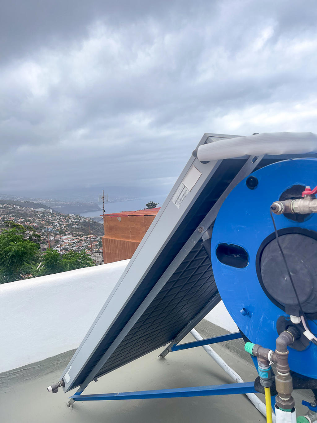 And at the very top – a 90-square-metre rooftop terrace. From here, you can see all the way to the ocean, and across to the impressive Teide. On clear days, the view feels almost unreal. And the sunsets? They’re unforgettable. The house also has solar collectors with an accumulator tank installed, for the warm water