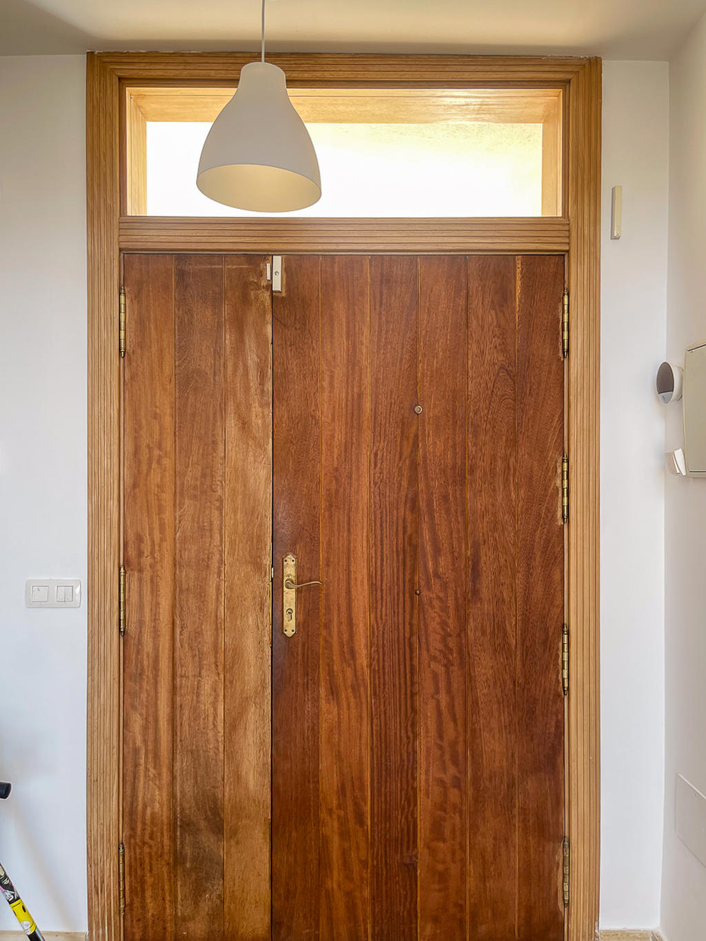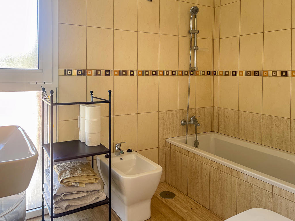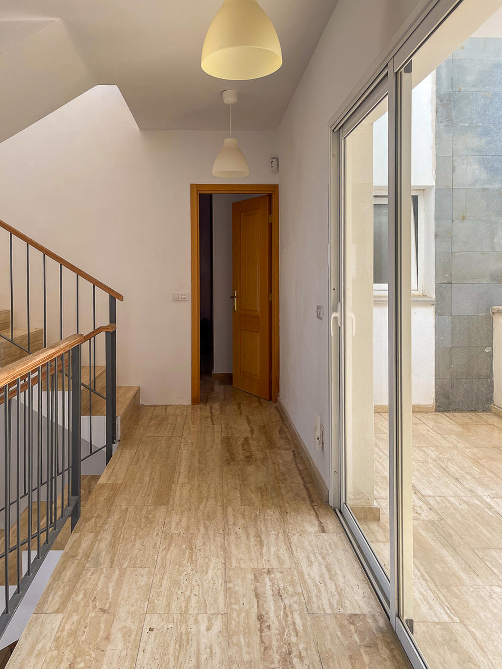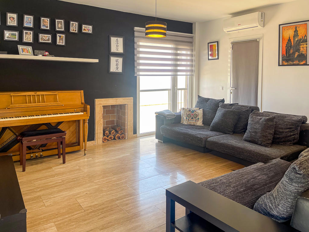 Heading upstairs, you'll find the home's three bedrooms, including a generous master bedroom with a walk-in closet and a private en-suite bathroom. An additional bathroom serves the other bedrooms, offering a practical and comfortable layout for both family and guests. One more set of stairs up takes you to the stunning rooftop terrace, with sweeping panoramic views of both the sea and the mountains – a perfect spot to relax and take in the surroundings. Solar panels are also installed here, providing sustainable electricity for the home.