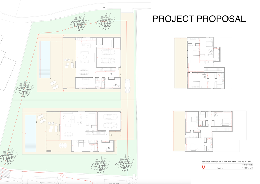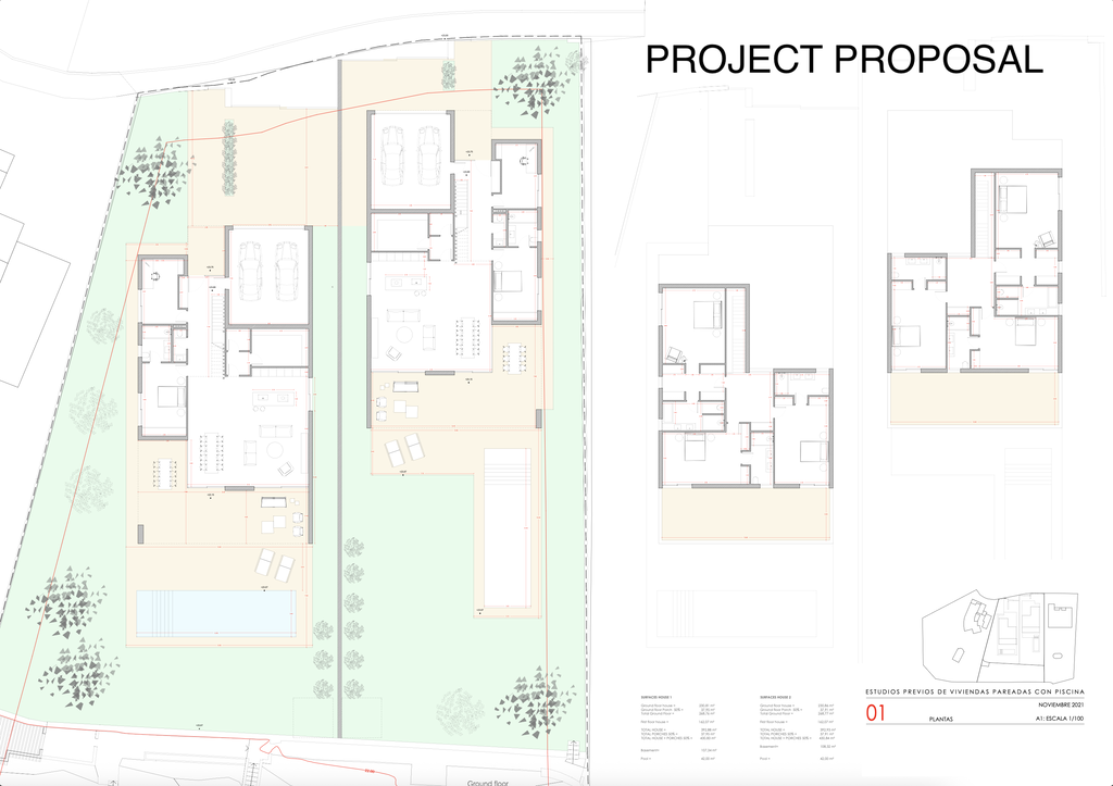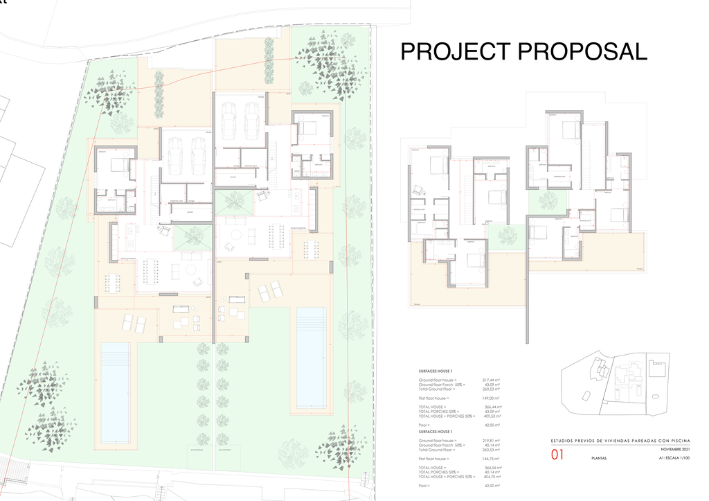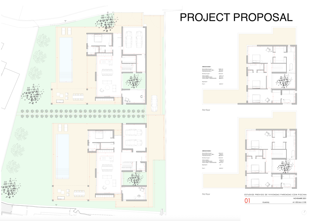 The total built area of approximately 750 square meters is distributed over two floors and offers plenty of space for a large household.