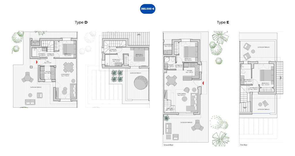 With 2, 3 or 4 bedrooms and different typologies, they are designed with an open and fluid distribution that makes your life more comfortable, prioritizing both indoor and outdoor spaces thanks to the large windows. In addition, for sunny days, the spacious terraces and private gardens will be your favorite corner.