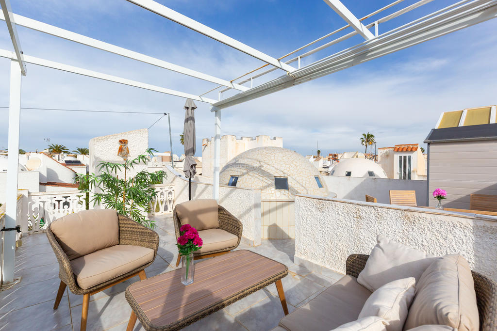 In the heart of the charming and highly regarded area of Las Chismosas in Orihuela Costa you will find this inviting single-storey semi-detached house – a home where traditional Spanish character meets modern elegance. The exterior exudes classic style while the interior has been carefully renovated with a contemporary expression and thoughtful selection of high-quality materials. The result is a home that combines aesthetics, comfort and function in the best possible way.