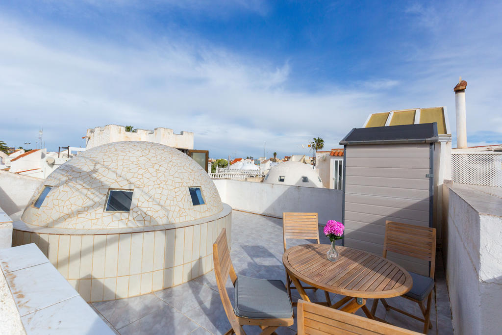 Upstairs, the generous roof terrace awaits – a private oasis with sun most of the day. There is plenty of space for sun loungers, a dining set and lounge furniture, while a pergola offers cooling shade during the hottest hours. The roof terrace is also equipped with practical storage and space for a barbecue for extra pleasant evenings, making it a perfect place for both relaxation and social moments.