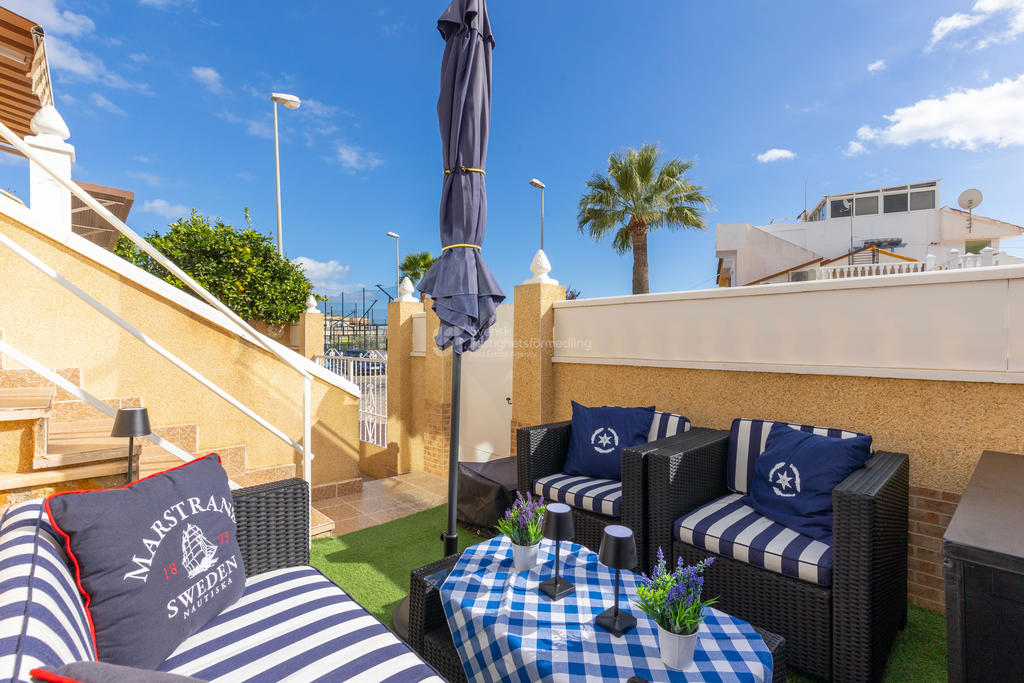 Drömmer du om ett soligt liv på Costa Blanca? Nu har vi nöjet att presentera detta eftertraktade quad-hus på populära Playa Flamenca. Här bor du i ett hem med solen som din ständiga följeslagare, tack vare ett nästintill perfekt söderläge.