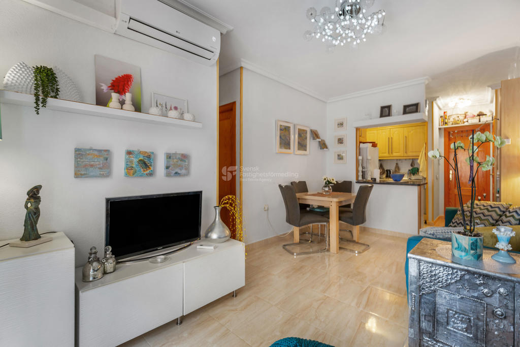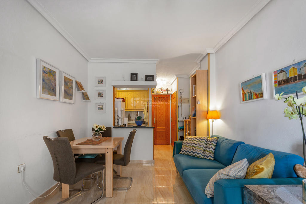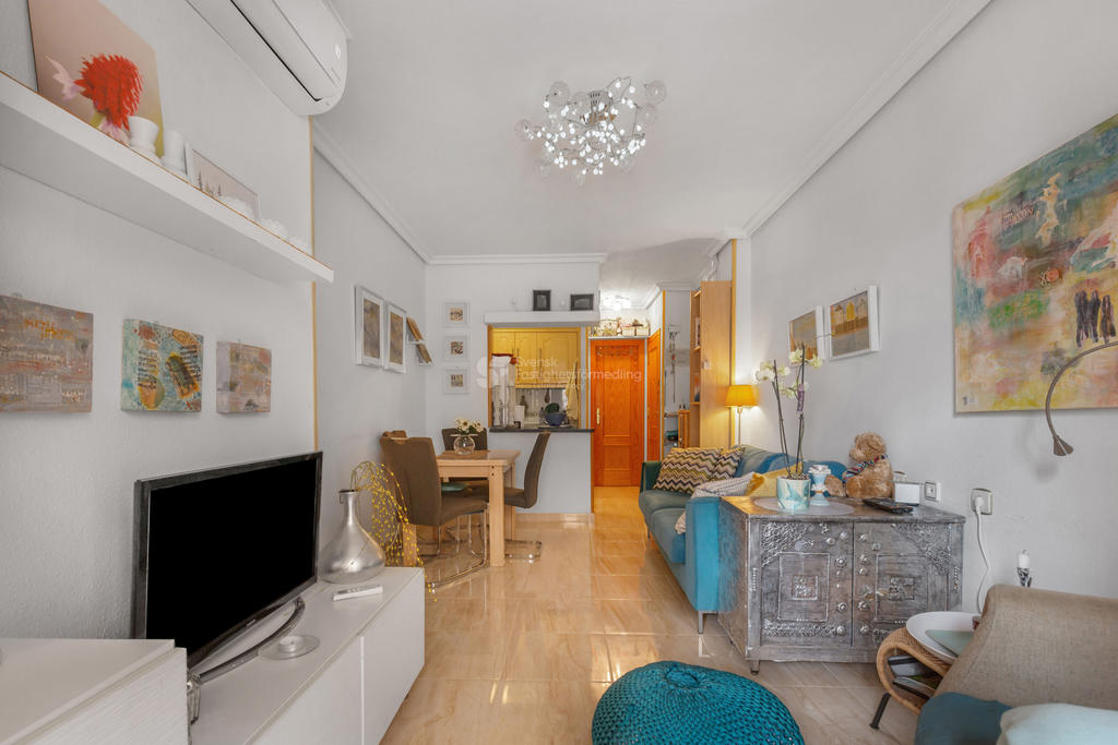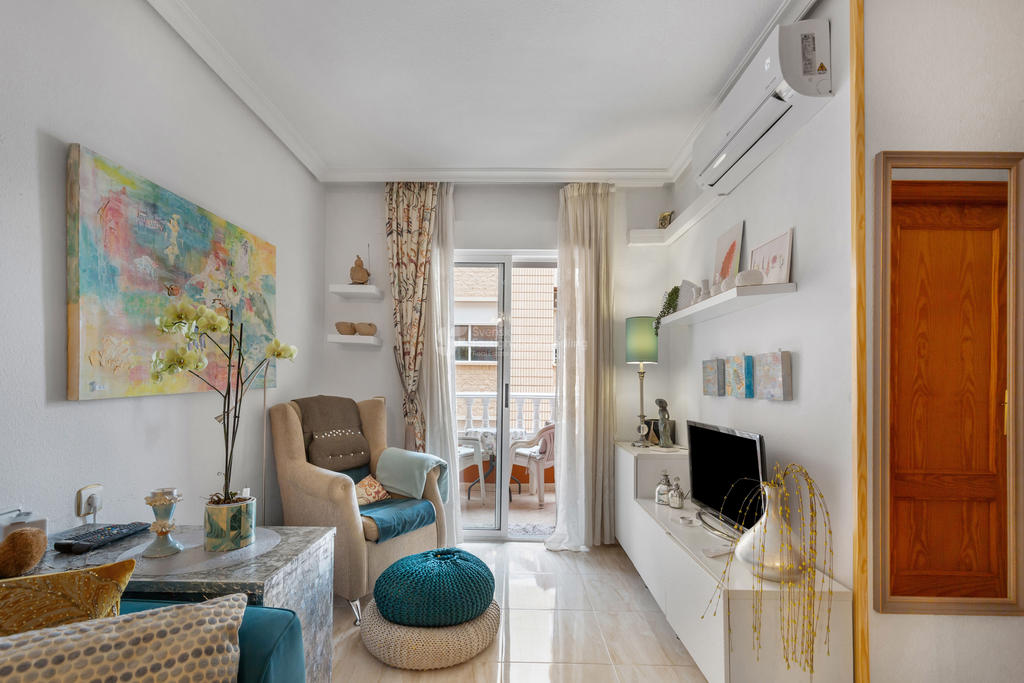 Välkommen till denna ljusa och trivsamma lägenhet på Calle San Emigdio i hjärtat av Torrevieja.