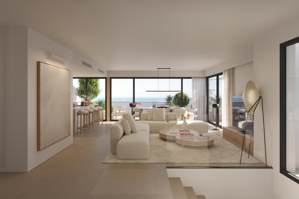 Torre Biznaga is a place for those who want to live near the sea while still having space for calm, comfort and everyday life. Here in Fuengirola, on the Costa del Sol, you live between the deep blue of the Mediterranean and the soft golden sand, in a home where light, views and carefully considered details shape the experience.