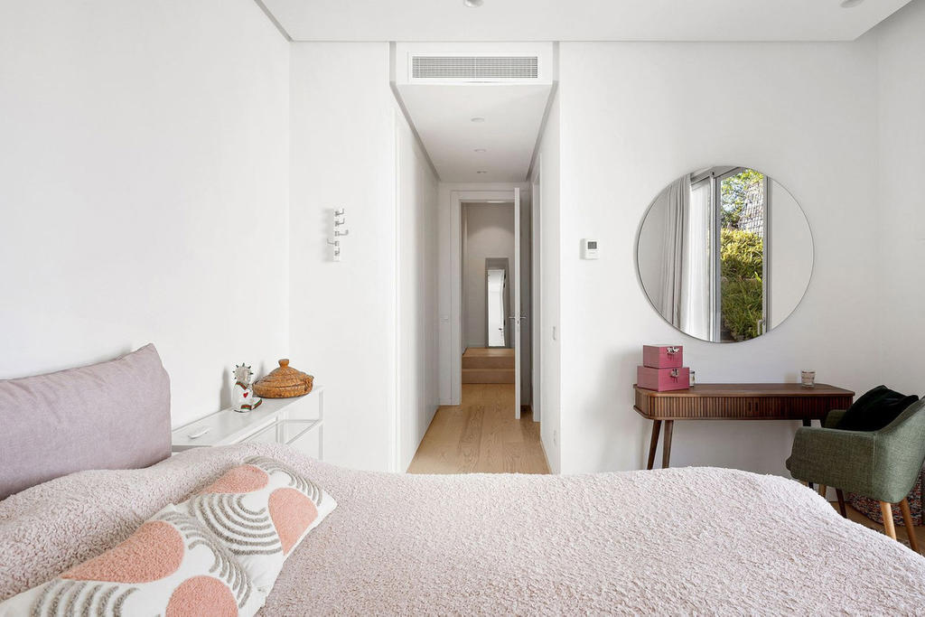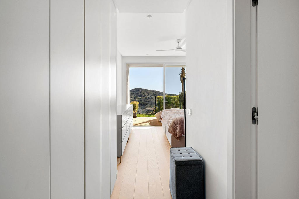 The property has an open plan kitchen/living-dining room with sliding doors leading you out onto the terraces and private garden. On the same floor you have the master bedroom and due to the original design, an extension of approx 40m2 has been added where the current owners enjoy watching tv and a home office has been set up. On the lower floor you have the 2 spacious guest ensuite bedrooms both with access to the main terrace through the stairs.