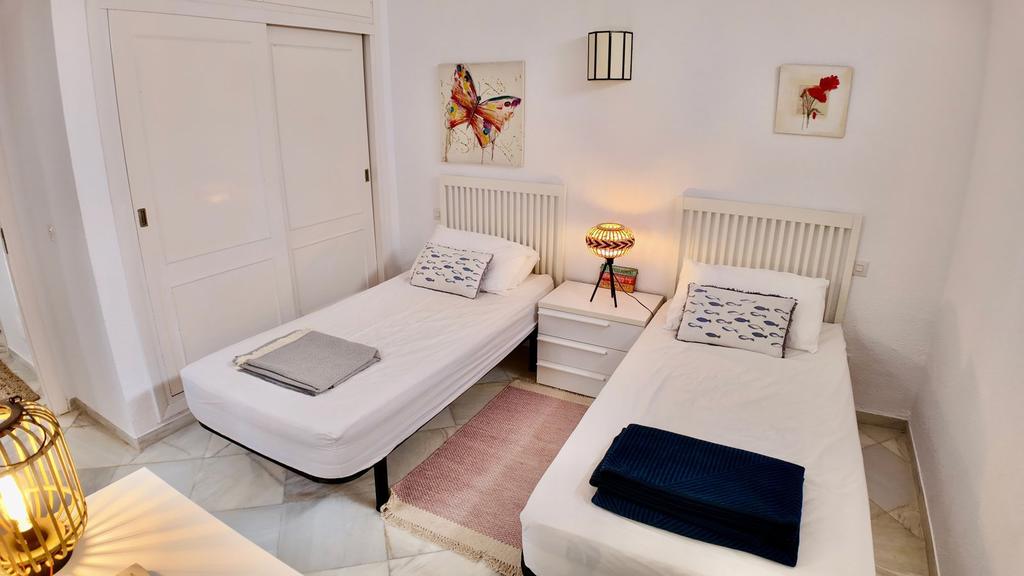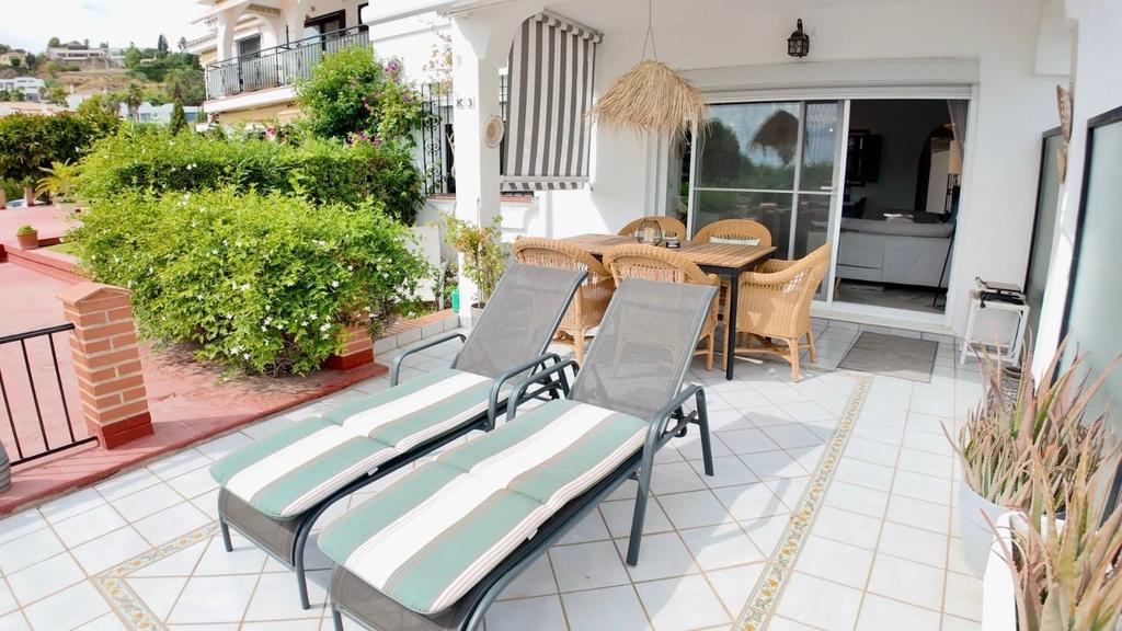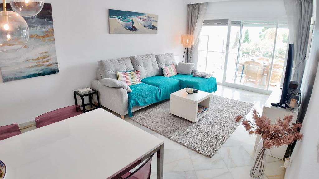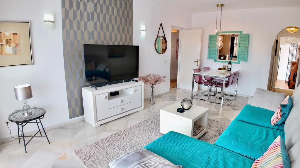 Bright living room with direct access to a spacious, all-day sunny terrace. Unbeatable views: the green of the 18-hole golf course, the blue of the Mediterranean Sea, and the charm of Andalusian nature. 2 spacious bedrooms, equipped with high-quality beds and built-in wardrobes. 2 modern bathrooms and a fully equipped kitchen with recent appliances. Patio with a washing machine and practical details for your convenience. Elegant marble flooring and a small private garden with jasmine, perfect for relaxing after a round of golf.