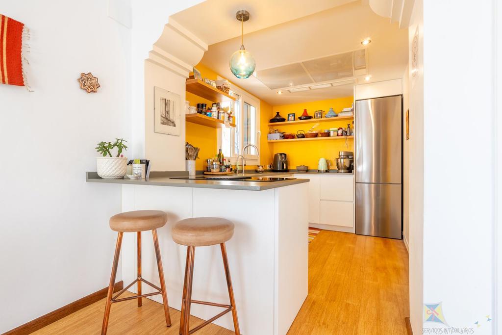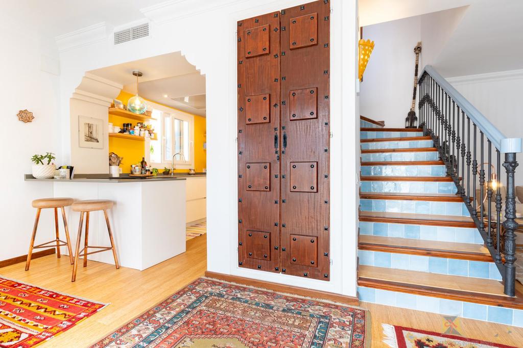 Upon arrival at this charming, recently renovated home, you are greeted by a south-facing private terrace where the sun touches every corner. As you step inside, the heart of the home unfolds – a spacious open-plan living and dining area with a modern kitchen, where the warmth of bamboo floors and a cozy fireplace create an inviting atmosphere.