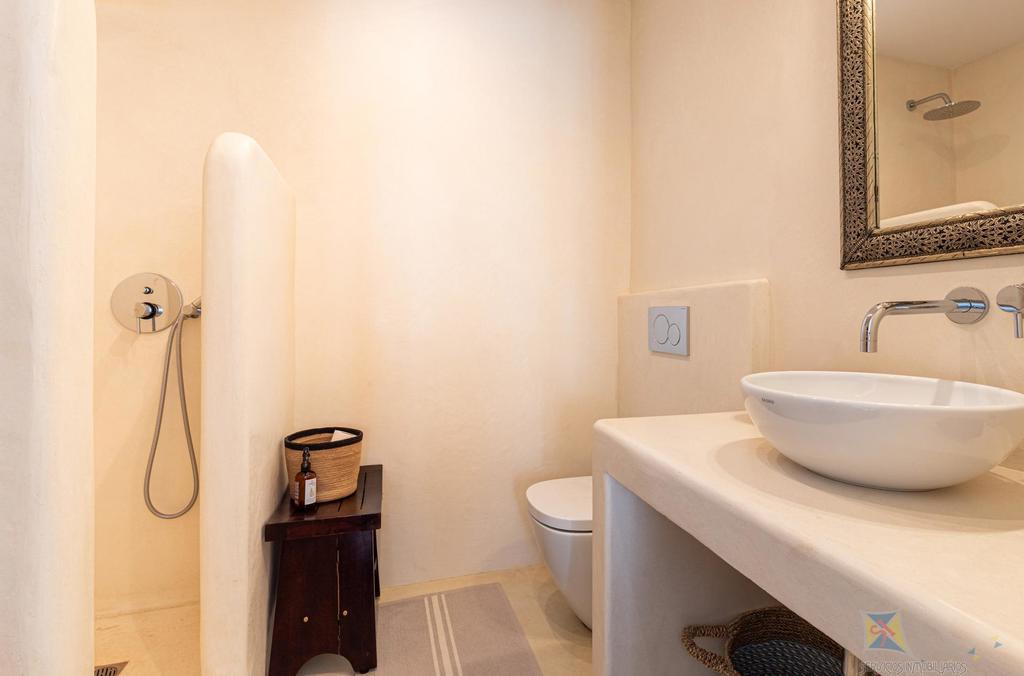 Upstairs, natural light guides you to the two bright and spacious bedrooms, both offering lovely views that invite slow, peaceful mornings. Each bedroom features its own en-suite bathroom, finished in exquisite Moroccan tadelakt, giving the spaces a unique and soulful character. One of the bedrooms also includes a small walk-in closet, perfect for keeping things organized.