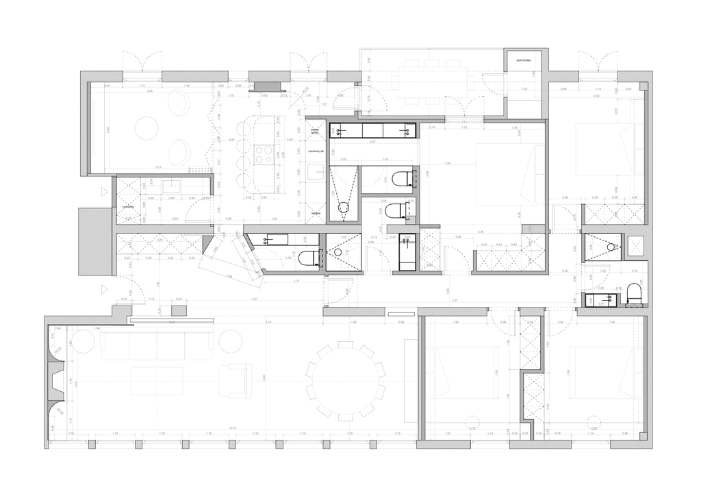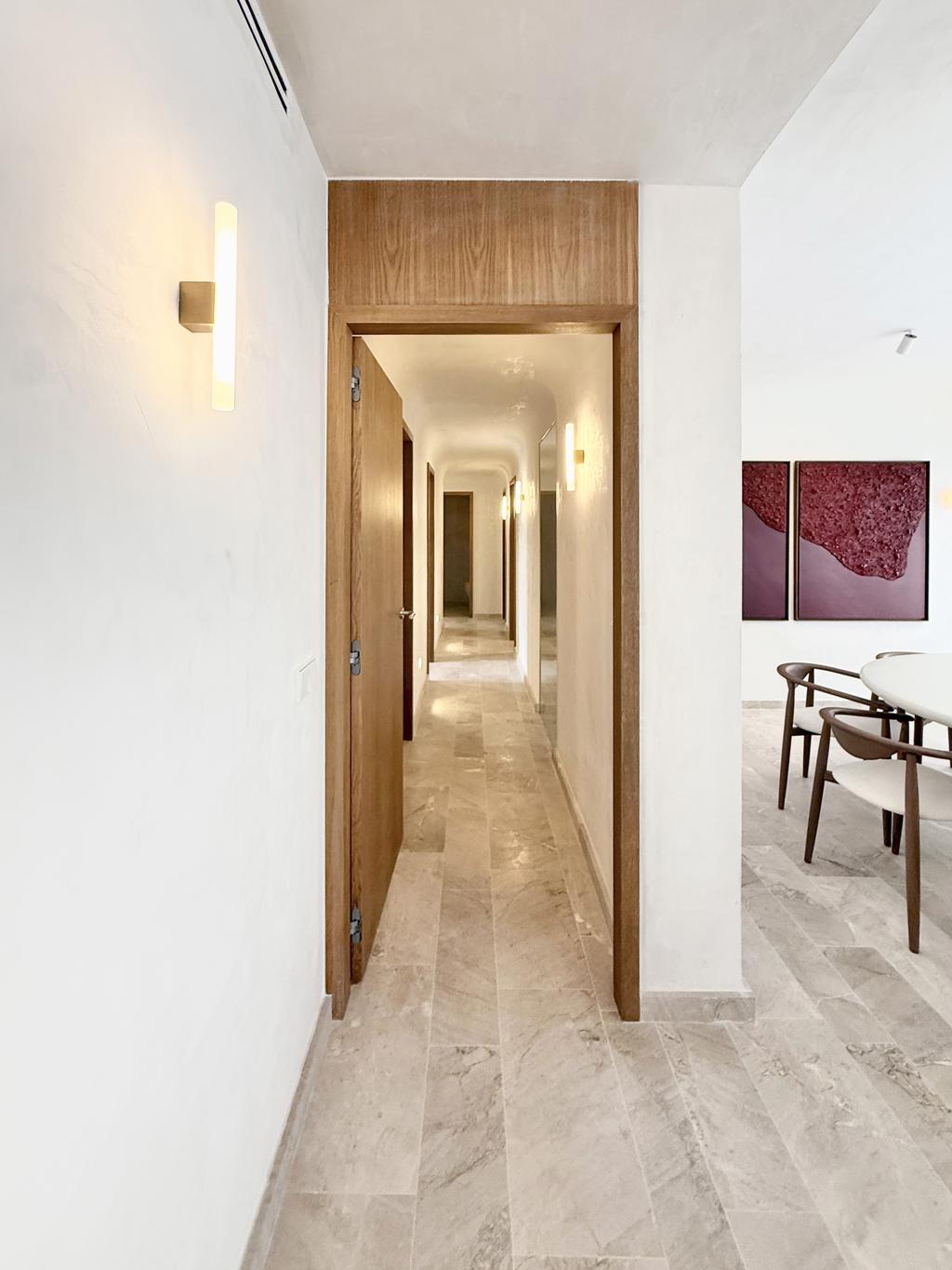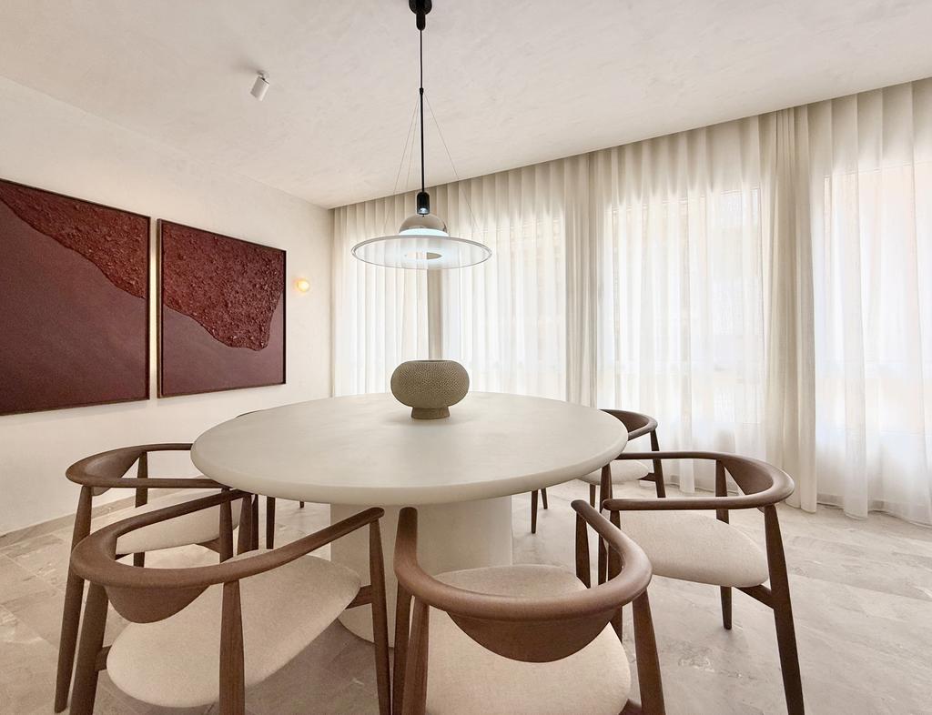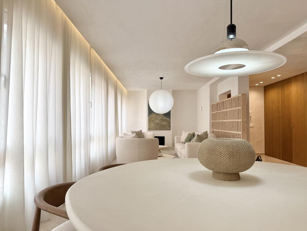 The lighting is carefully planned and includes fixtures from well-known brands such as Flos, HAY, Vibia, Iltiluce as well as local designers such as Contain and Studio ISLAS – a combination that creates a warm and sophisticated play of light. The furniture, selected by Espacio Home, includes design classics from Muundo, Mogg, Expormim and Gloster and can be purchased separately.