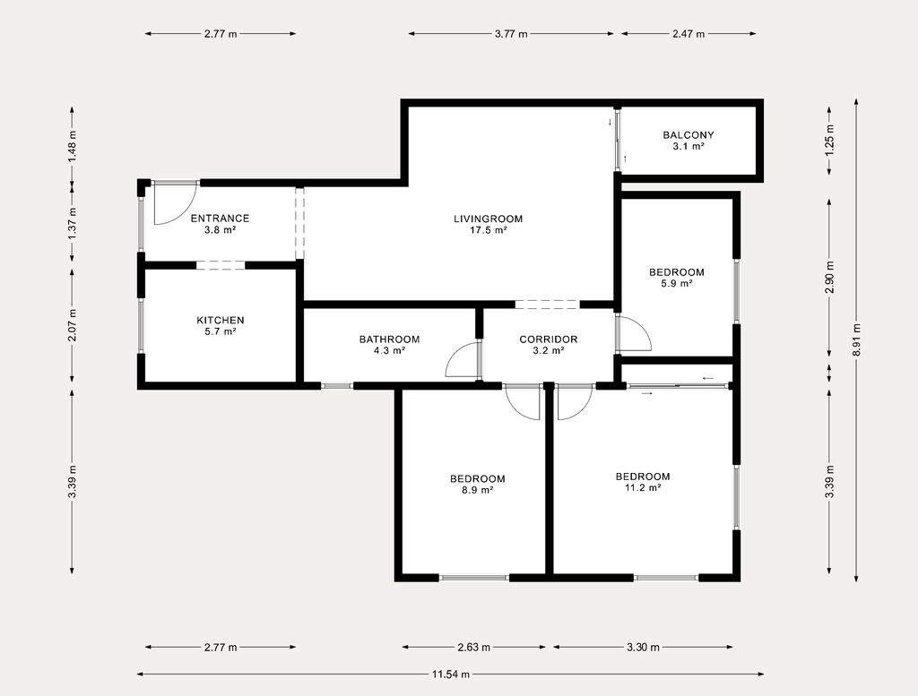 The home covers approximately 72 square meters and has three bedrooms. Two of the rooms face the sea and offer a peaceful view that sets the tone for the day, while the third room is ideal as a study, guest room or children's room. The stylishly renovated bathroom is equipped with a generous shower in a modern design.