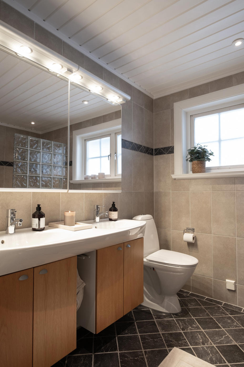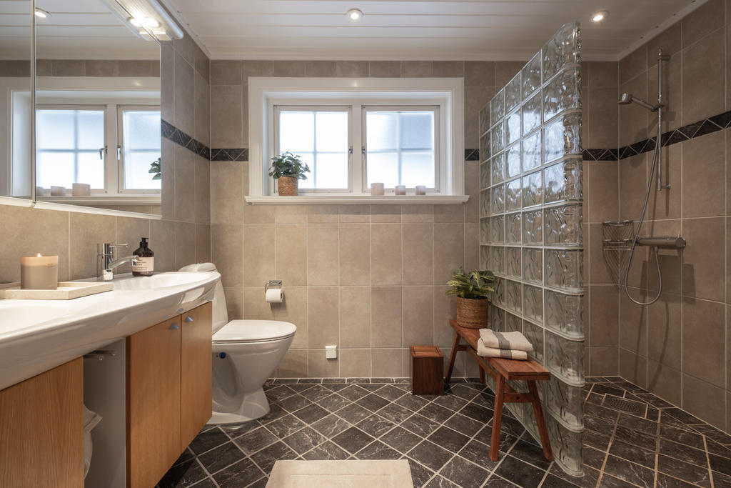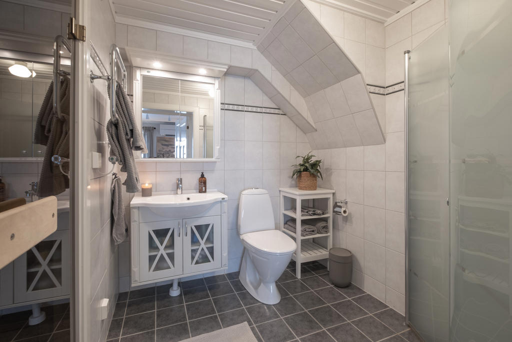 Varje våningsplan erbjuder ett badrum med dusch och wc. På nedre plan finns även en stor bastu som bjuder på härlig värme efter skidåkning och aktiviteter. Ett måste i en riktigt fjällstuga!