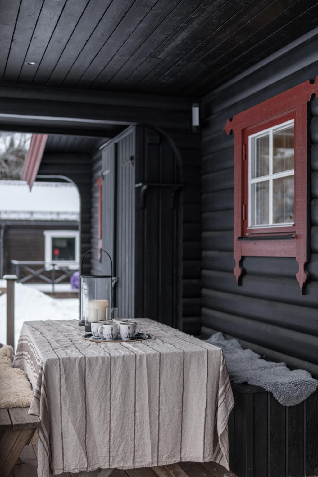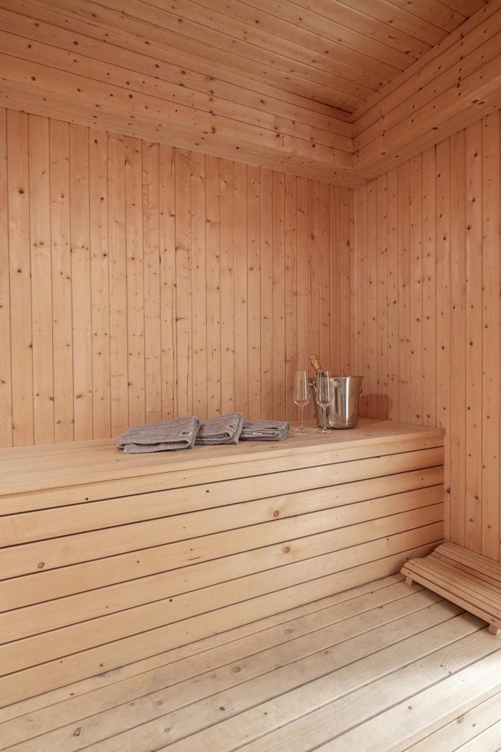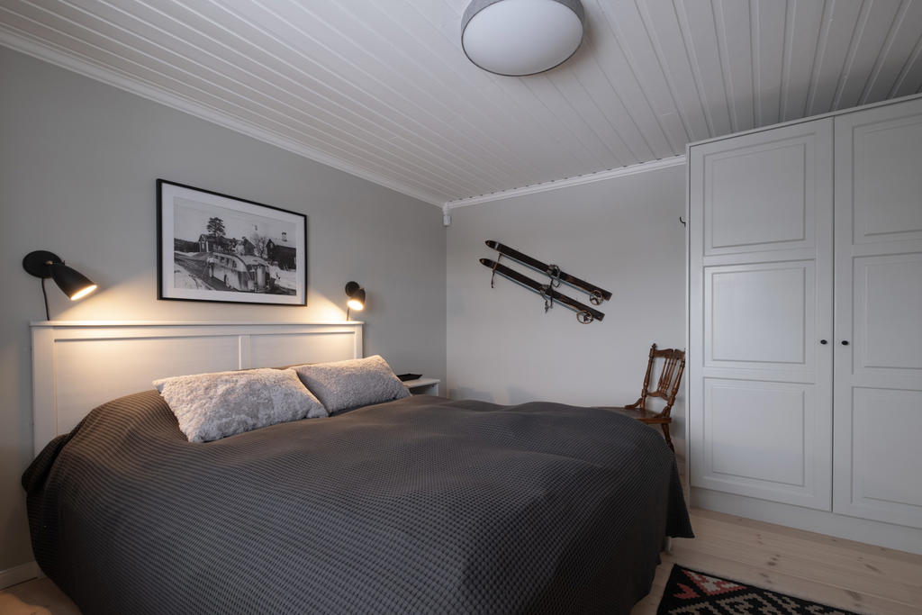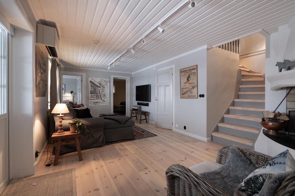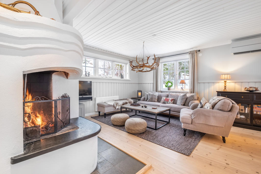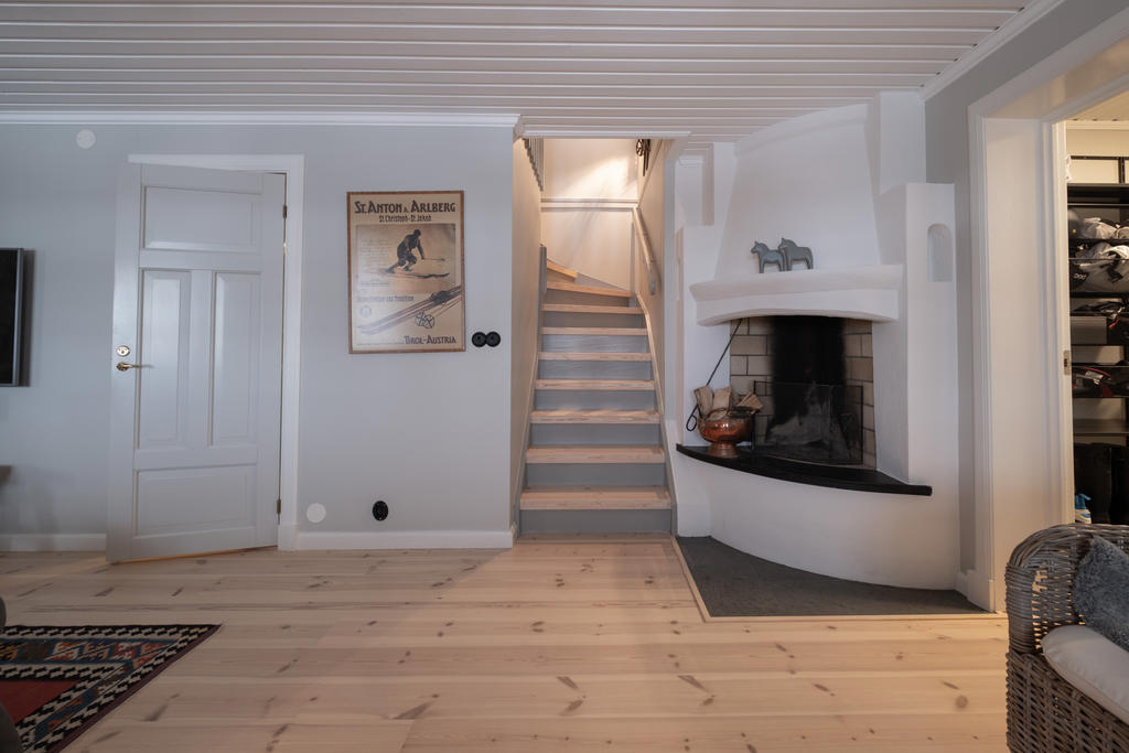 Materialvalen är gedigna och genomtänkta och skapar en fin och avkopplande atmosfär där den sprakande öppna spisen ger den extra mysfaktorn och värmande avkoppling du önskar efter dagens aktiviteter.