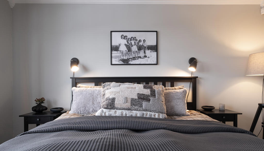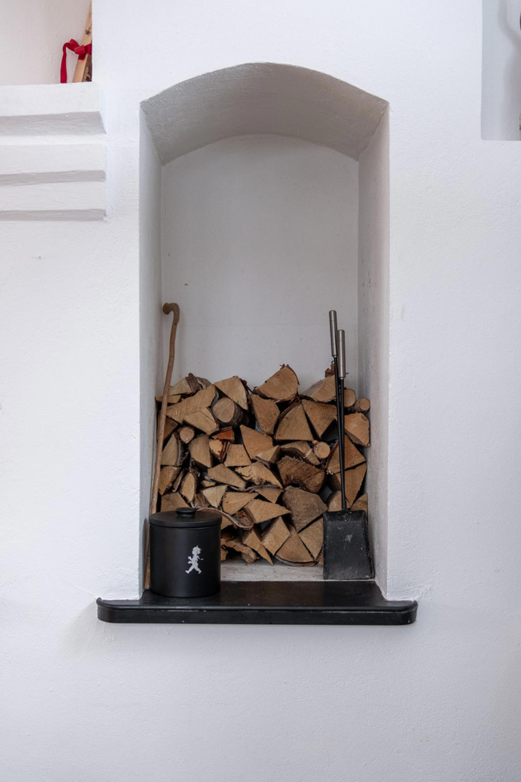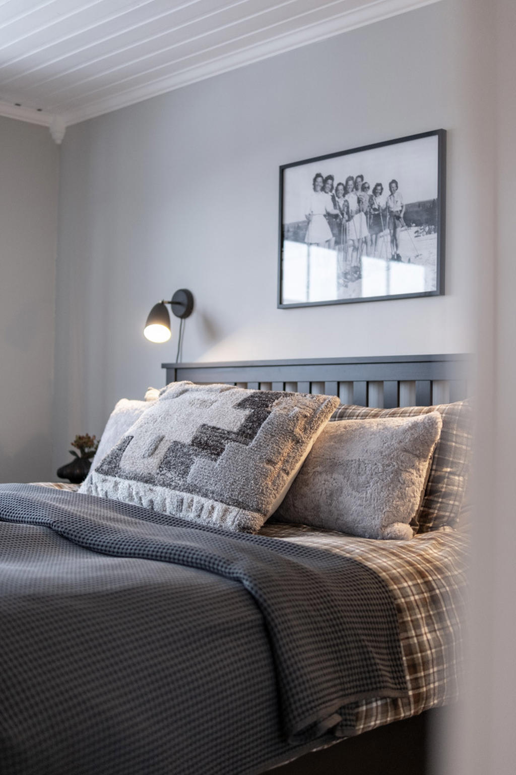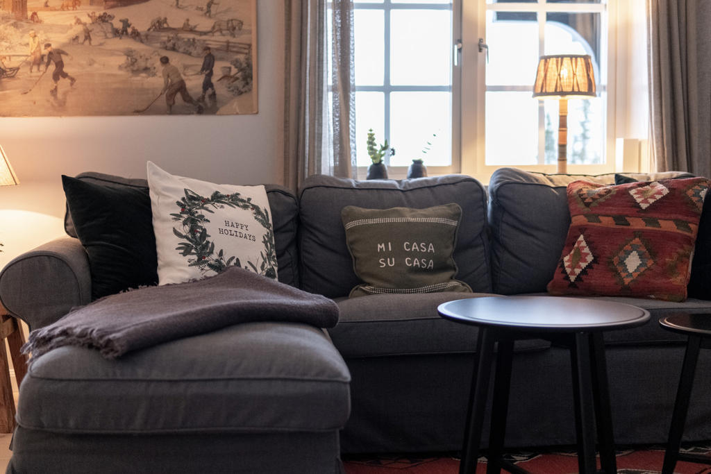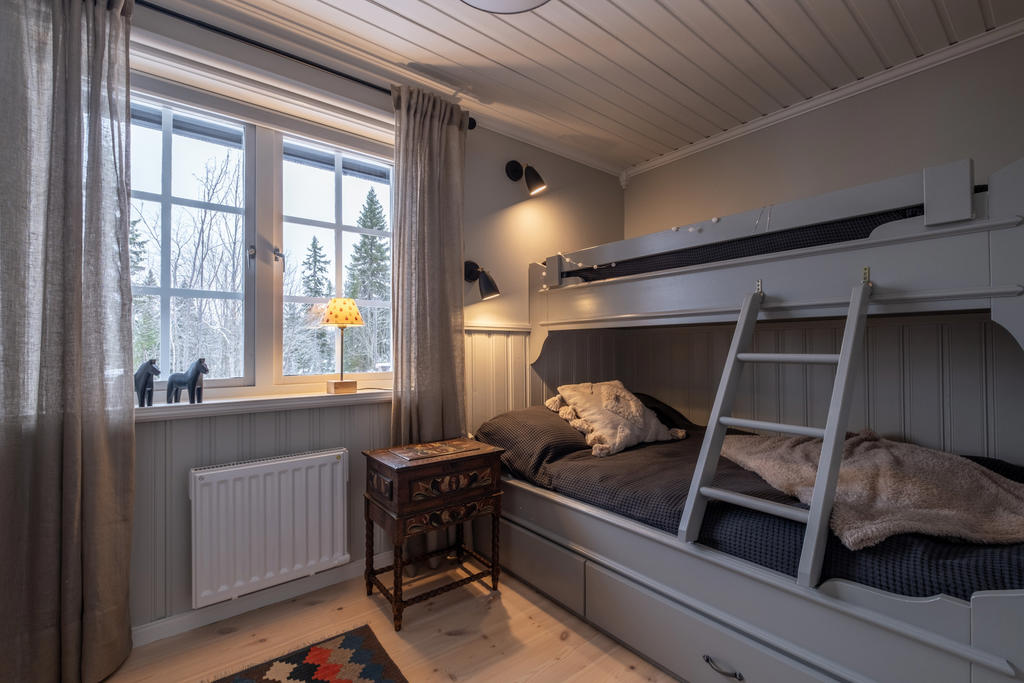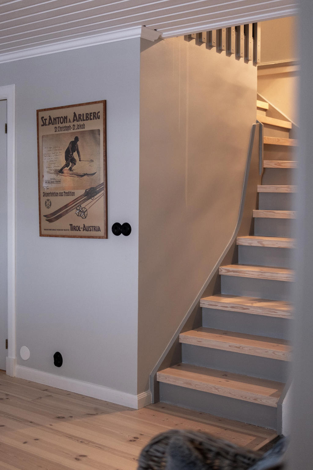 Fjällandskapet blir en naturlig del av interiören och skapar ett ständigt närvarande lugn. Den öppna planlösningen mellan kök, matplats och vardagsrum gör hemmet till en självklar samlingspunkt, med plats för långa middagar, livliga samtal och stilla kvällar framför den sprakande brasan.