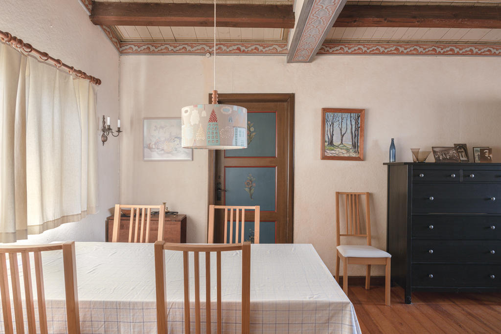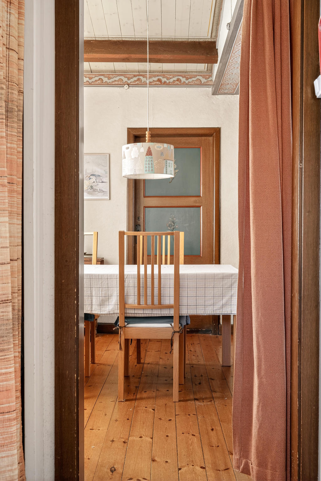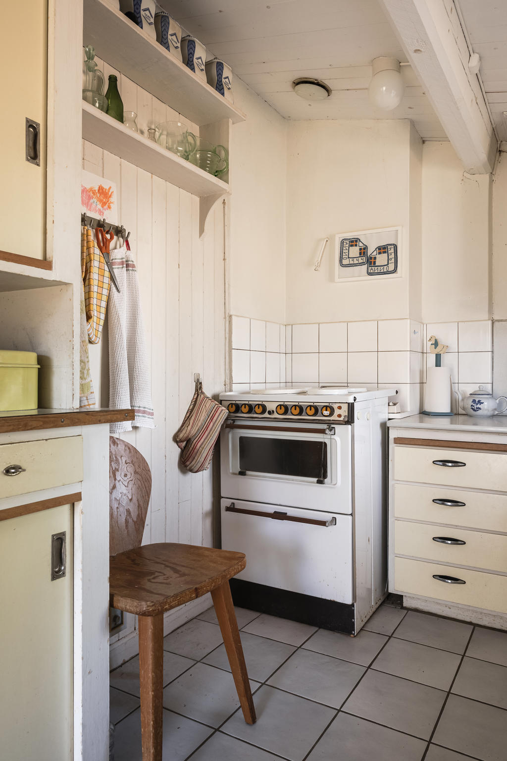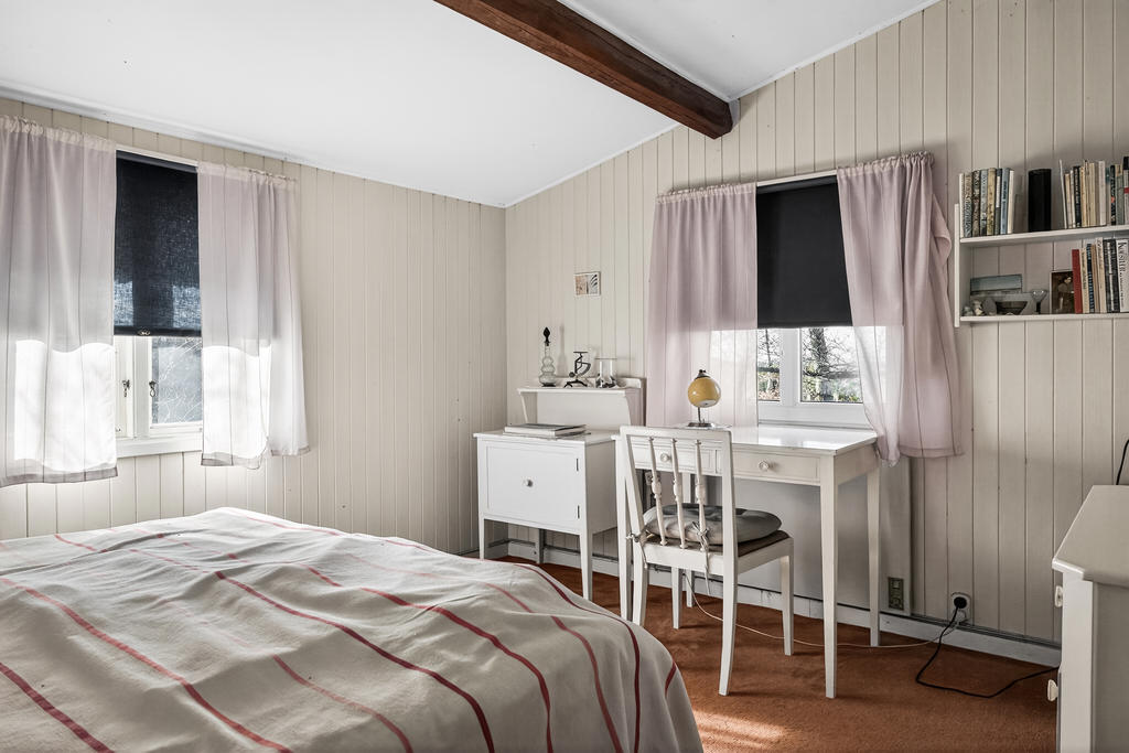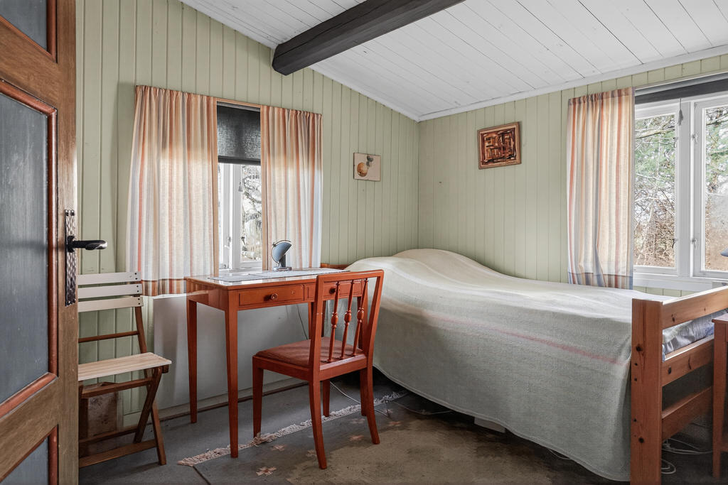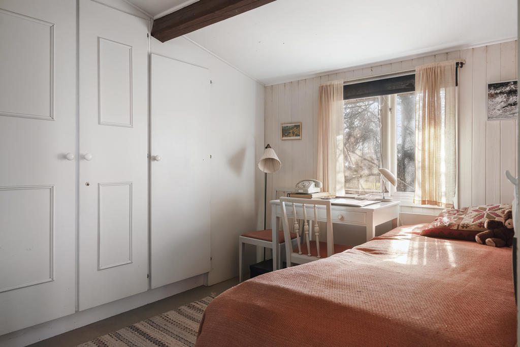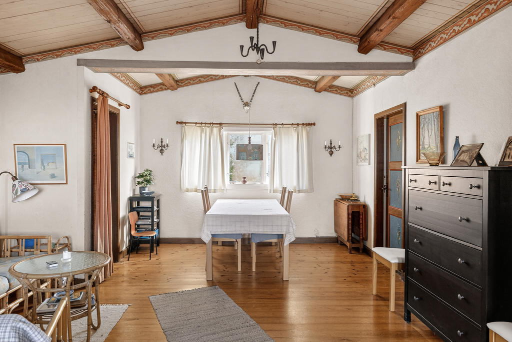 Trähuset om 70 kvadratmeter med tre sovrum har stått stadigt sedan 1935 och har bevarats väl. Kliv in i hallen och möt ett välbevarat klassiskt platsbyggt kök med cremefärgade skåpsluckor och klassiska beslag. Vidare in i husets hjärta och sällskapsrummet som bjuder på en takhöjd upp i nocken. Dekormålade takbjälkar, handmålade innderdörrar i allmogestil, öppen spis med stenbåge och havet bakom fönstret. Det bästa från förr i blandning med en vardagslyx som är få förunnad. Ta klivet ut från allrummet till den takskyddade verandan, närmre naturen och havet. OBS. öppen spis är ej fungerande då murstock och skorsten är borttagna.