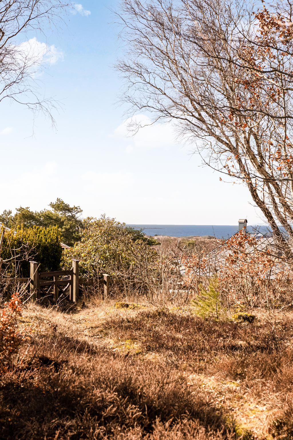 Huset är vackert inbäddat på den stora och lummiga tomten där du kan skymta Kattegatt mellan träden. Du finner även gäststugan, i enhetlig stil, med extra sängplatser och gott om förvaringsmöjligheter på denna fastighet.