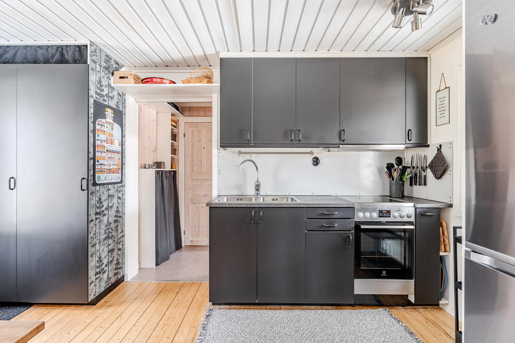2021 Gjort om planlösningen i gamla delen av stugan. Målning av tak och väggar, nytt kök inkl. vitvaror och spis