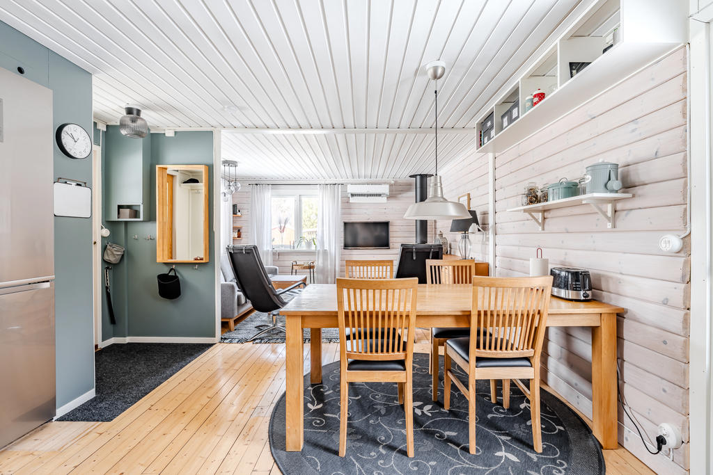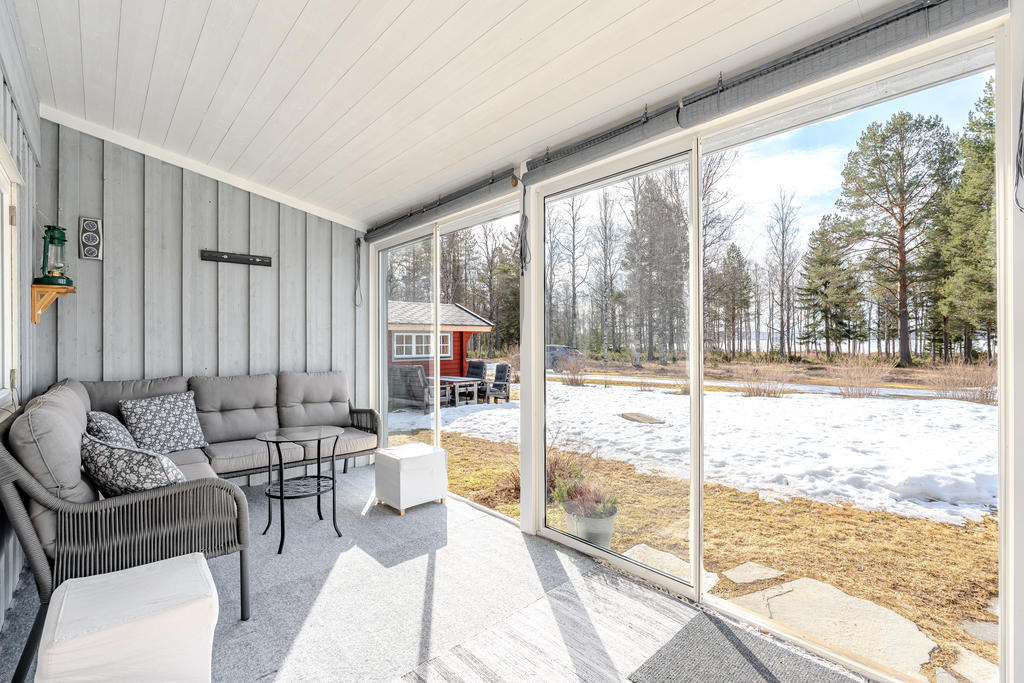 Välkommen till ett rofyllt fritidsboende på Soludden, vackert beläget vid fantastiska Locknesjön. Här möts du av lugn, natur och närheten till vatten – en plats att verkligen koppla av på, året om. Den inglasade verandan fungerar som ett extra rum under stora delar av året. Känslan av att sitta skyddad inomhus, men med full kontakt med naturen och utsikten över sjön, är svårslagen. Här kan du slå dig ner i soffan, följa vattnets skiftningar och bara låta stillheten ta plats.