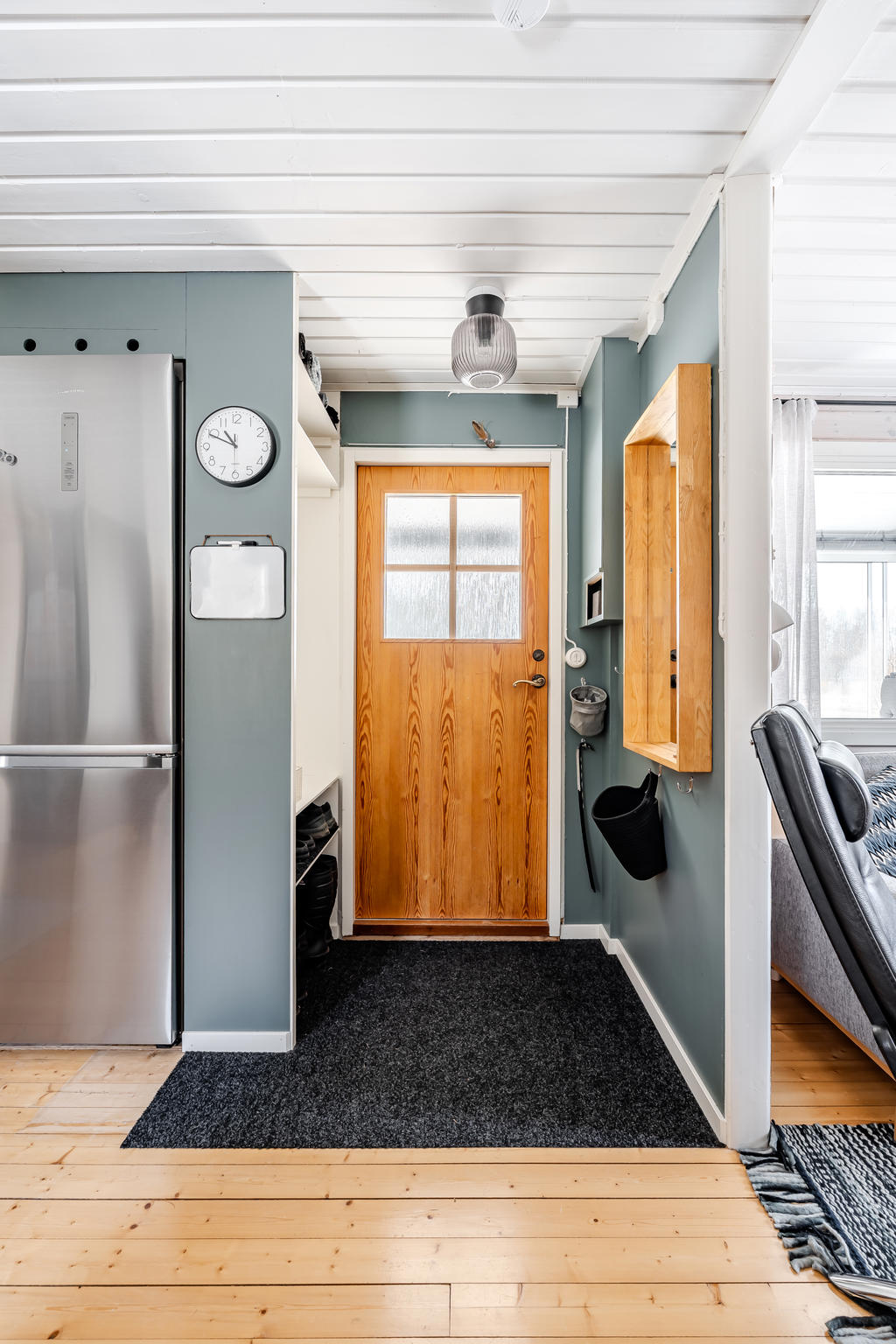 2023 Målning och "smart förvaring" i halldelen mellan sovrum och badrum.