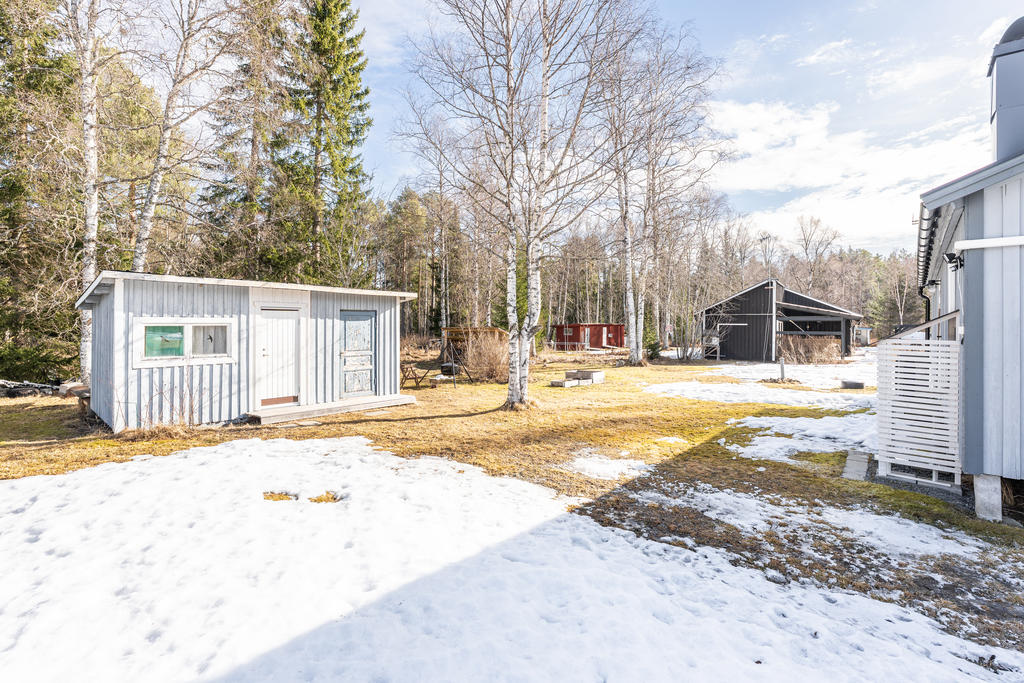 Förrådet består av två delar, den ena används som förråd/snickarbod. Den andra delen används som förråd, den delen är enligt tidigare ägare isolerad och skulle kunna nyttjas som ett extra gästrum om man vill.