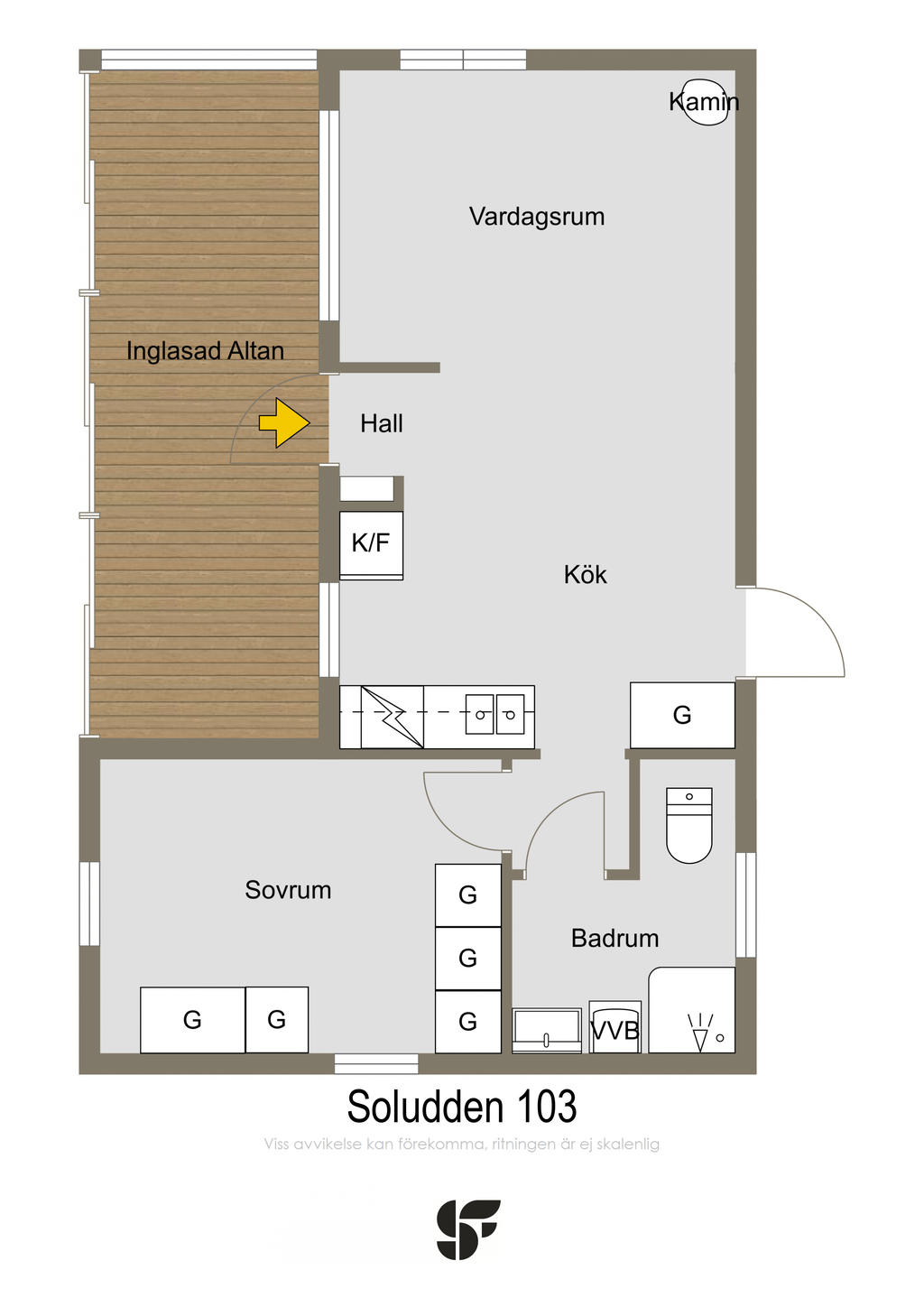 Välkommen in! Du möts direkt av en öppen och inbjudande planlösning som skapar en härlig känsla av rymd. I den praktiska entrédelen finns smidig avhängning. Kök och vardagsrum samspelar i ett stort och socialt rum med gott om plats för både matbord och soffgrupp. Kaminen är centralt placerad och utgör ett naturligt blickfång som bidrar till en varm och ombonad atmosfär. Köket är yteffektivt planerat med generösa förvaringsmöjligheter trots sin kompakta storlek. Härifrån nås även utgången till baksidan via balkongdörr. Vidare finns ett rymligt sovrum med plats för både säng och förvaring, samt ett badrum i anslutning. Ett välplanerat boende där varje kvadratmeter kommer till sin rätt.