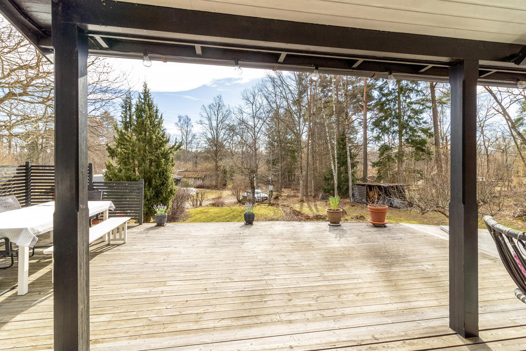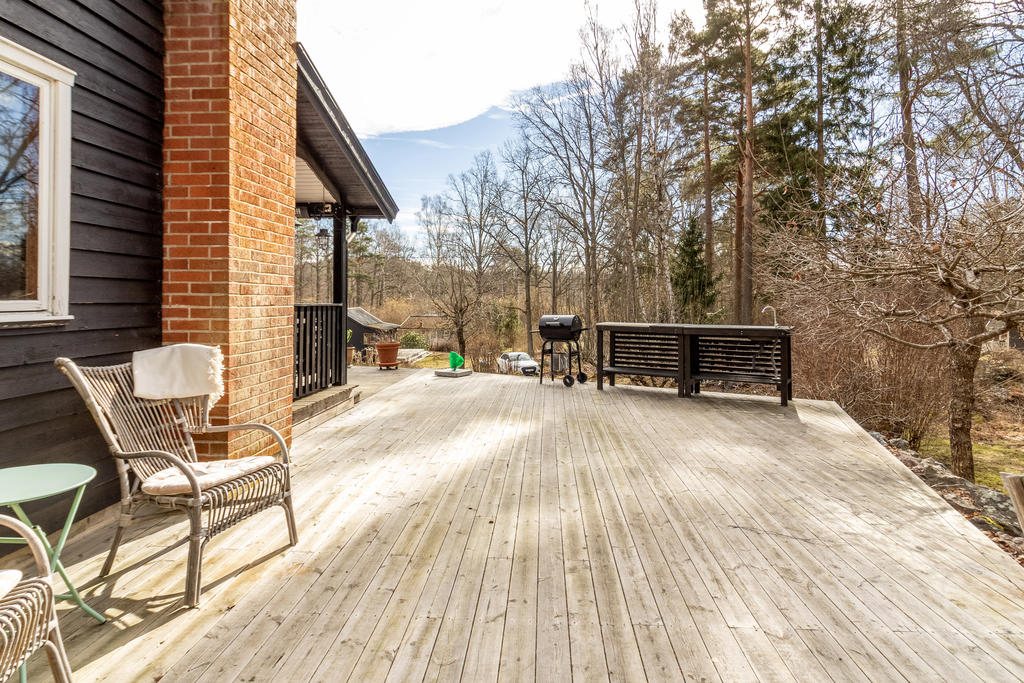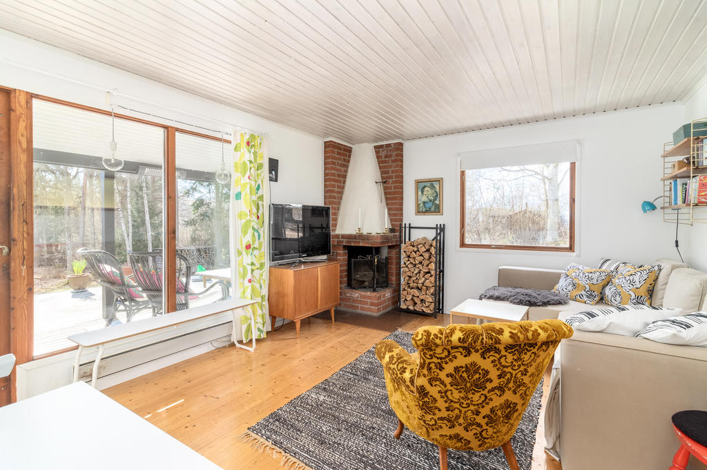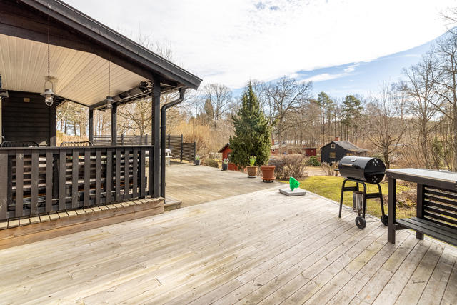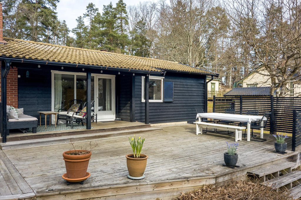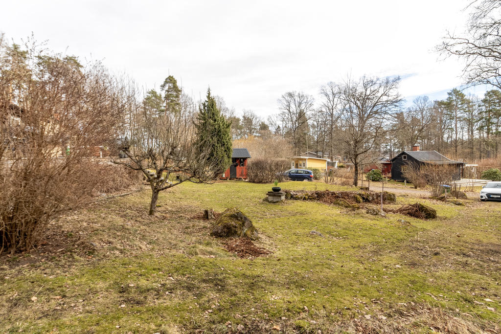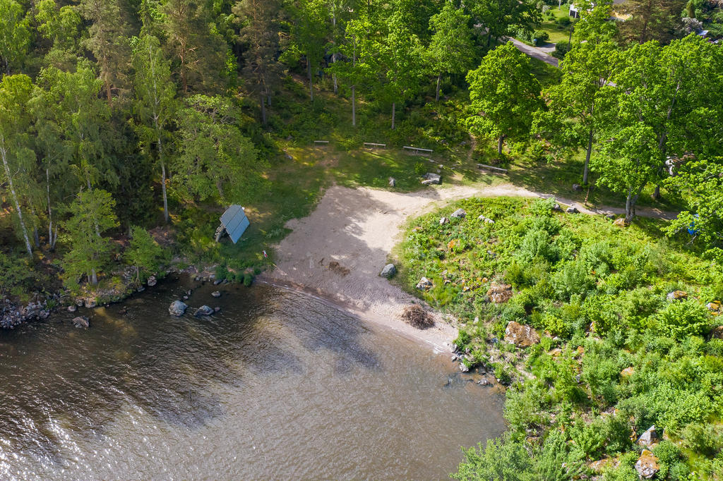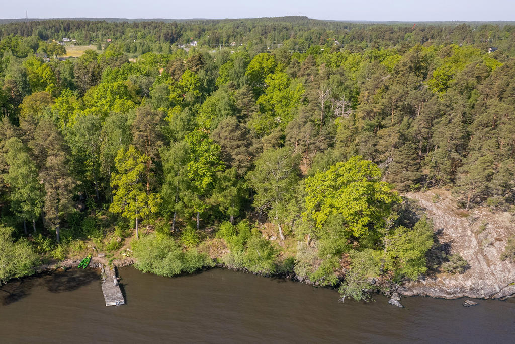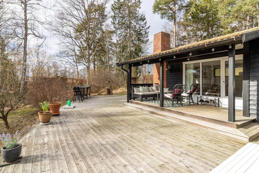 På en lummig och lättskött trädgård omgiven av höga träd och insynsskyddande häckar finner vi ett välvårdat fritidshus med Mälaren strax intill. En kort stig leder ned till klippbad och strax intill finns även en helt insynsskyddad liten strand och brygga. Området har många badplatser men här vid klipporna är du oftast ensam, och det känns nästan som ditt egna privata bad i skogen. Här njuter man av ljumma sommarbad medan kvällssolen sänker sig i horisonten. På vintern förvandlas skogsbacken ned till klipporna till en pulkabacke och Mälarens blanka spegel till skridskobana.