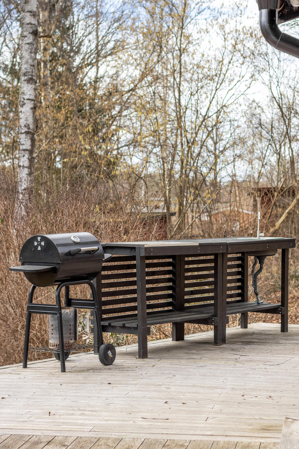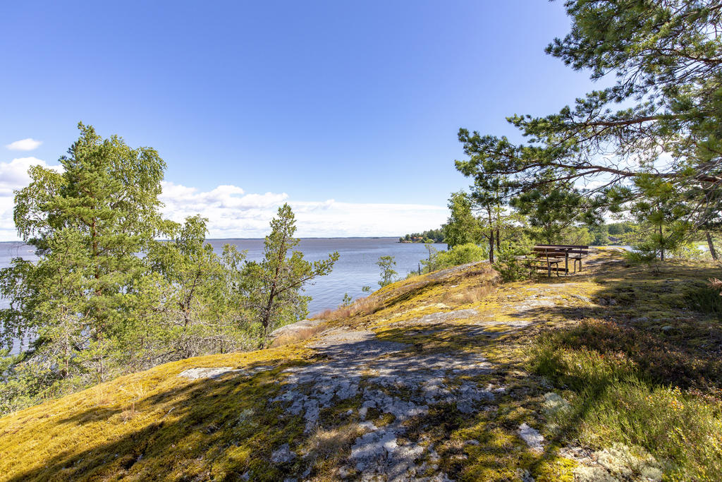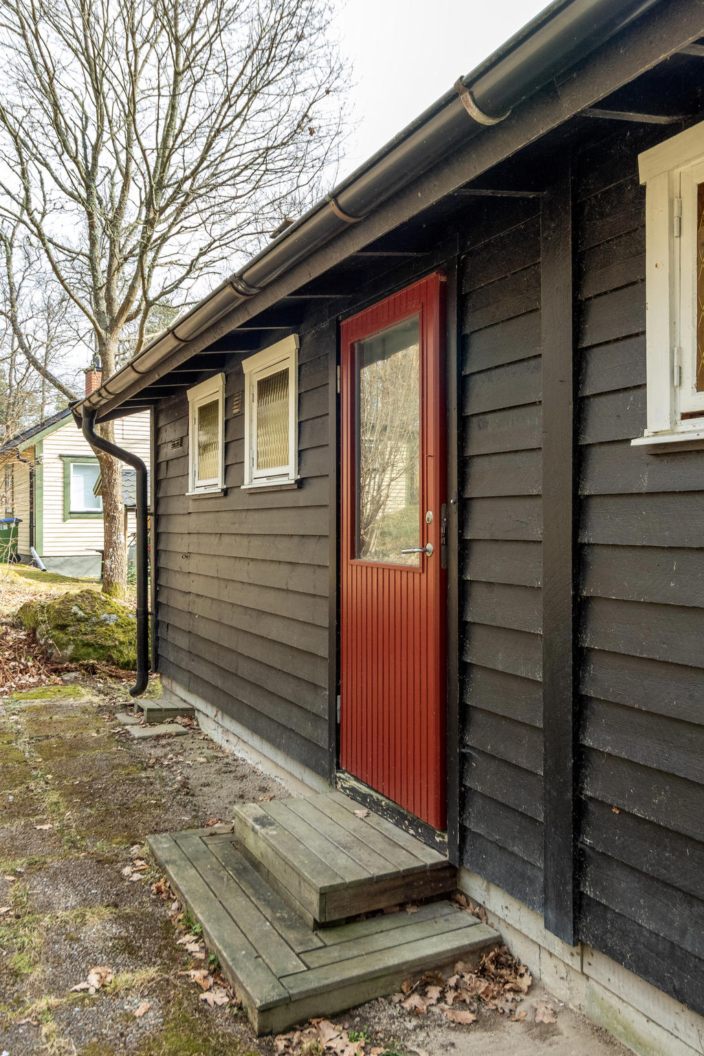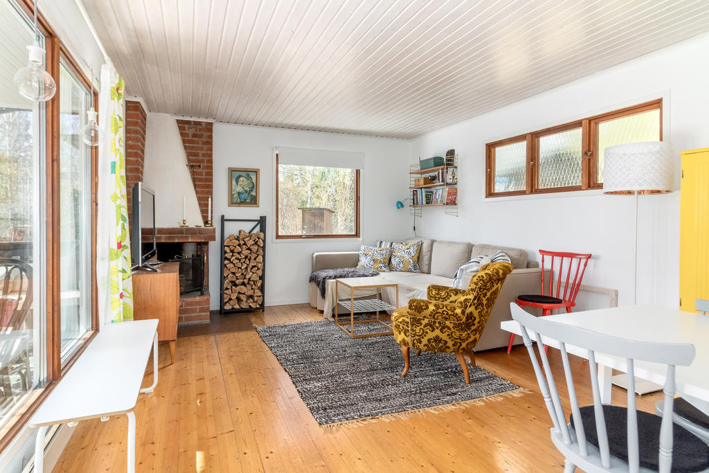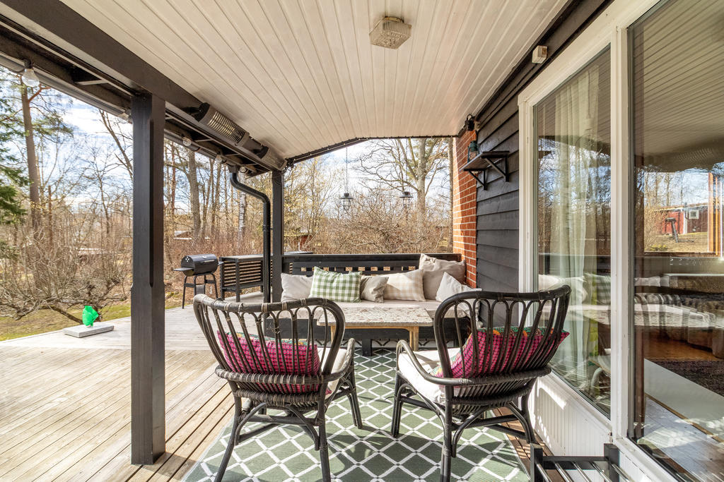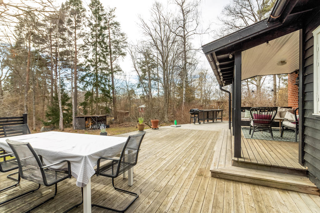På en lummig och lättskött trädgård omgiven av höga träd och insynsskyddande häckar finner vi ett välvårdat fritidshus med Mälaren strax intill. En kort stig leder ned till klippbad och strax intill finns även en helt insynsskyddad liten strand och brygga. Området har många badplatser men här vid klipporna är du oftast ensam, och det känns nästan som ditt egna privata bad i skogen. Här njuter man av ljumma sommarbad medan kvällssolen sänker sig i horisonten. På vintern förvandlas skogsbacken ned till klipporna till en pulkabacke och Mälarens blanka spegel till skridskobana.