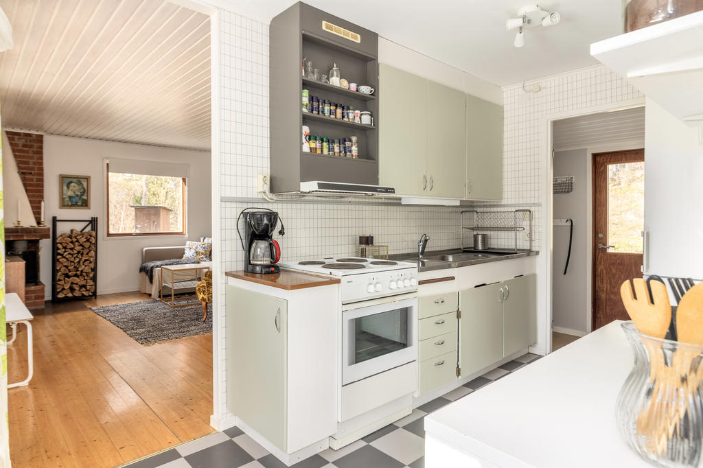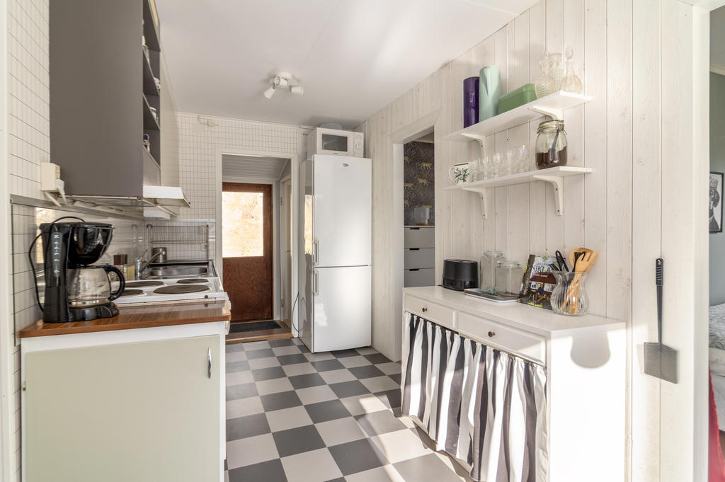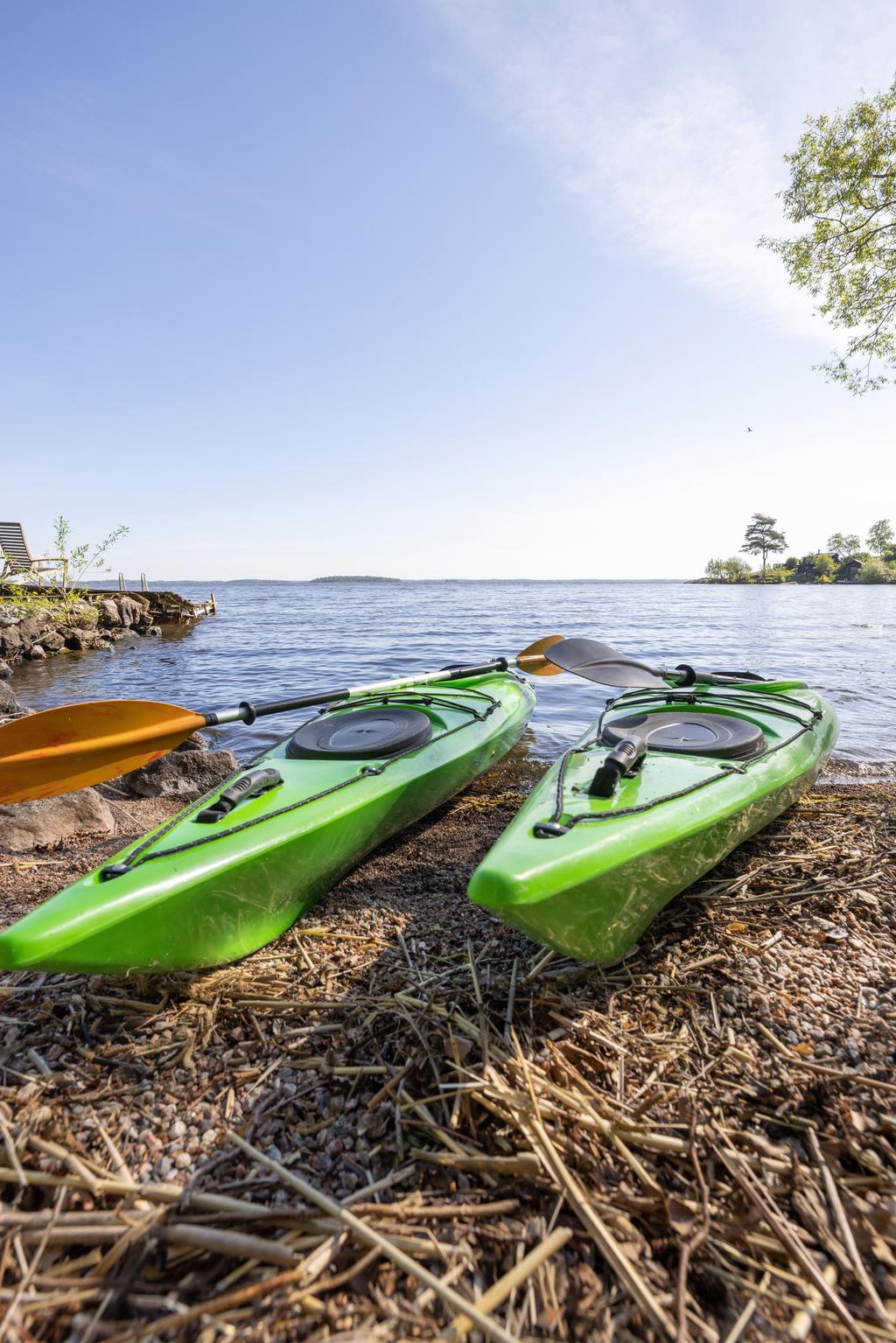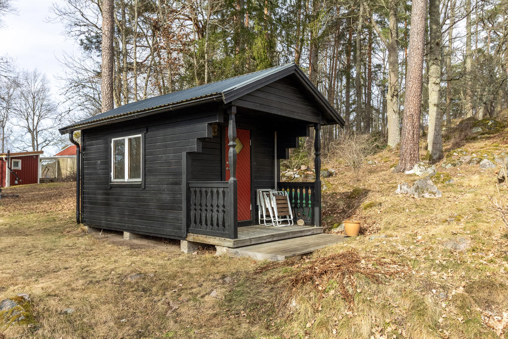För långväga gäster, eller till tonåringen, finns även en gäststuga med litet dass intill och för sommarens små snickarprojekt finns en förrådsbod. Båtplats vid bryggor strax intill följer med stugan.