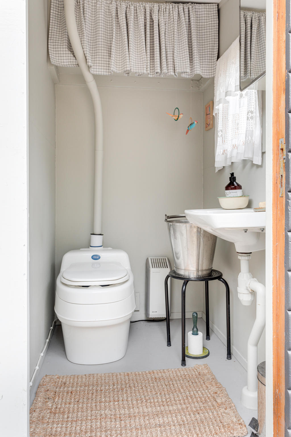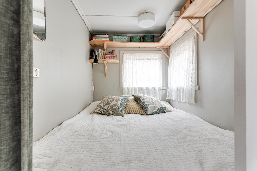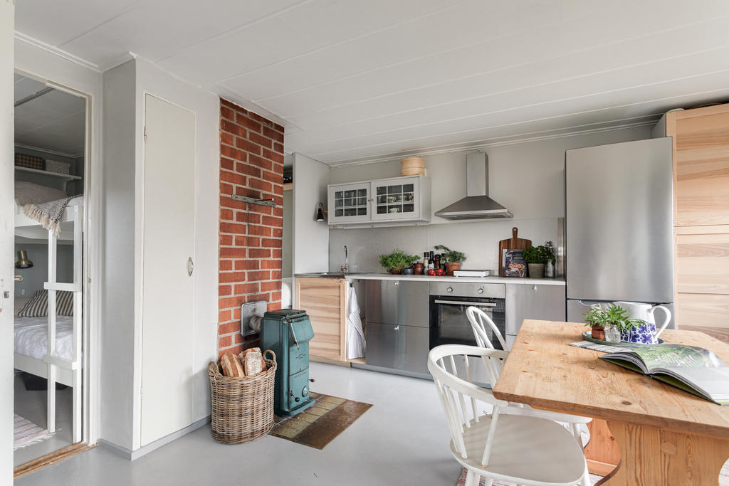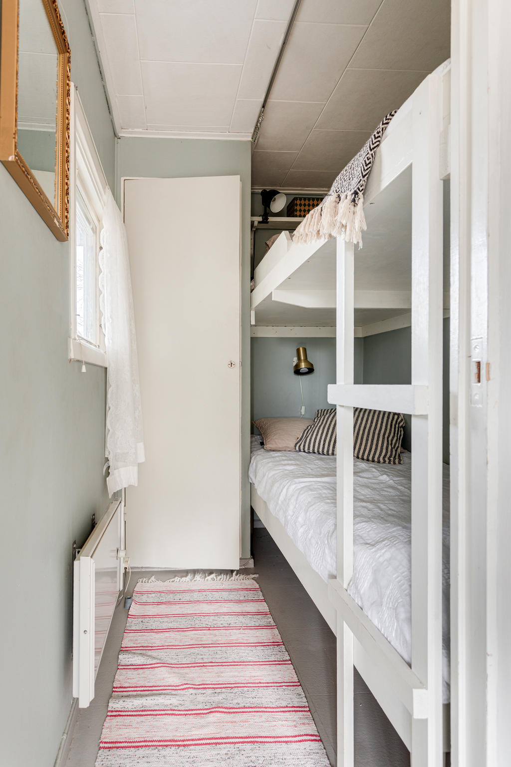 Boendet rymmer två smart planerade sovrum – ett med våningssäng och ett med plats för en större säng. Här är varje kvadratmeter väl genomtänkt och maximalt utnyttjad. Huset är i gott skick och har omsorgsfullt tagits om hand under det senaste året.