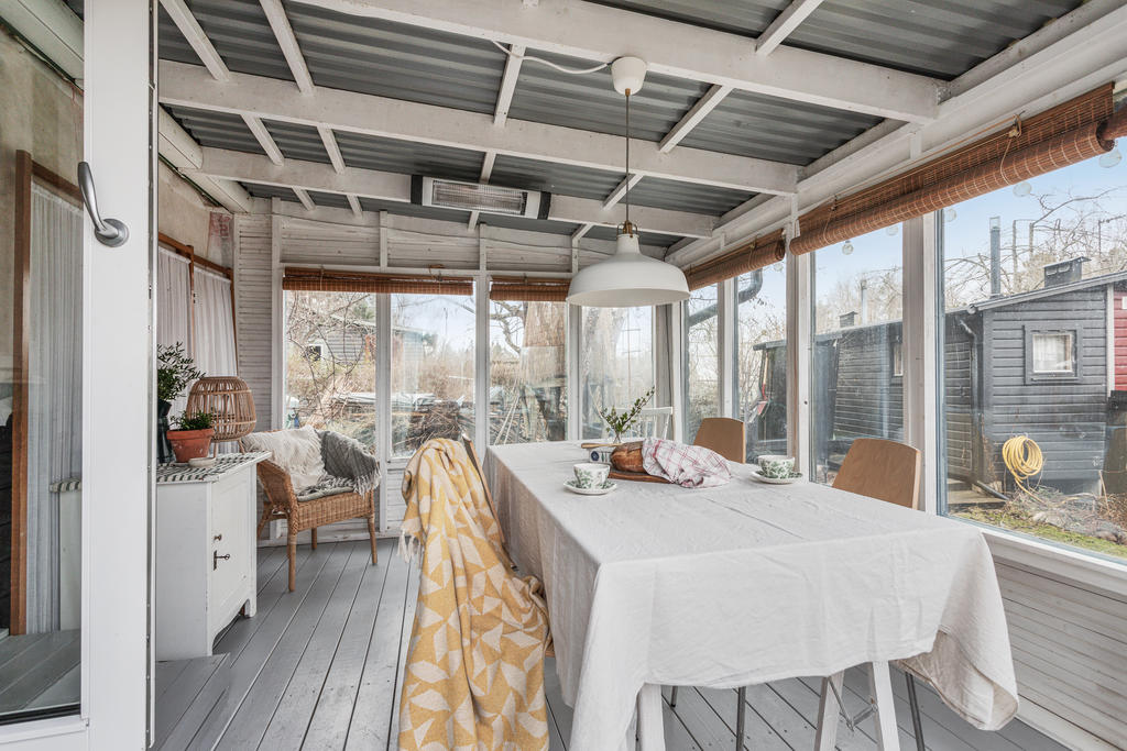 Här möts du av en välskött stuga med ett härligt inglasat uterum med plats för upp till sex personer – en naturlig samlingspunkt för långa middagar och sköna sommarkvällar. Stugan erbjuder en öppen och social planlösning med ett nytt, fräscht kök (2022) samt en trivsam sällskapsyta där braskaminen sprider både värme och atmosfär under kyligare dagar.