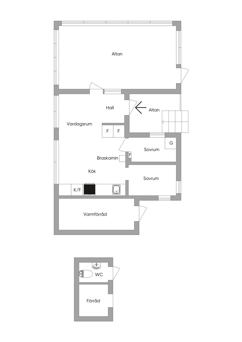 Till fastigheten hör även ett praktiskt varmförråd och på tomten finns ytterligare en separat byggnad med förråd och separett- toalett ( 2023), vilket ger extra funktionalitet och bekvämlighet.