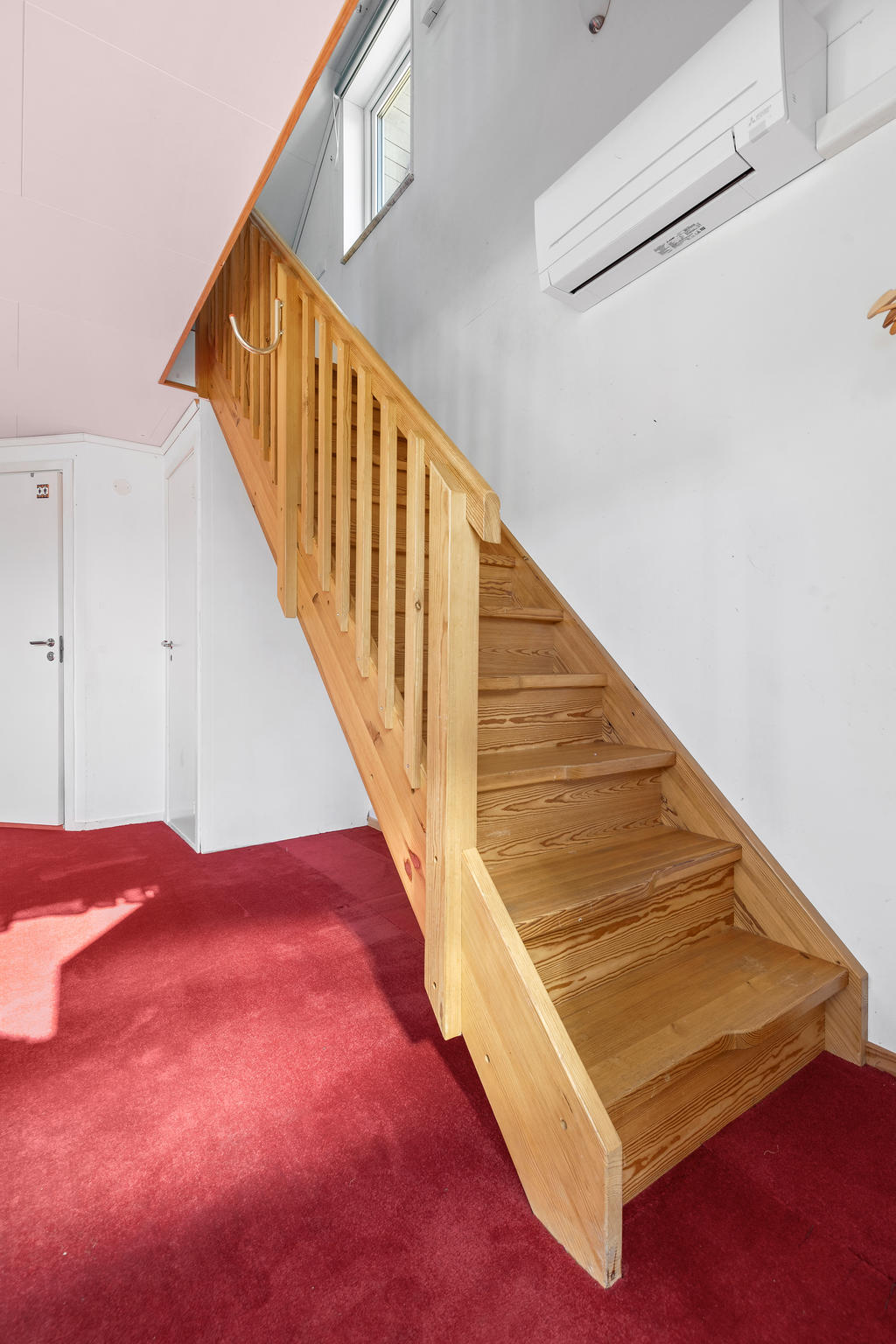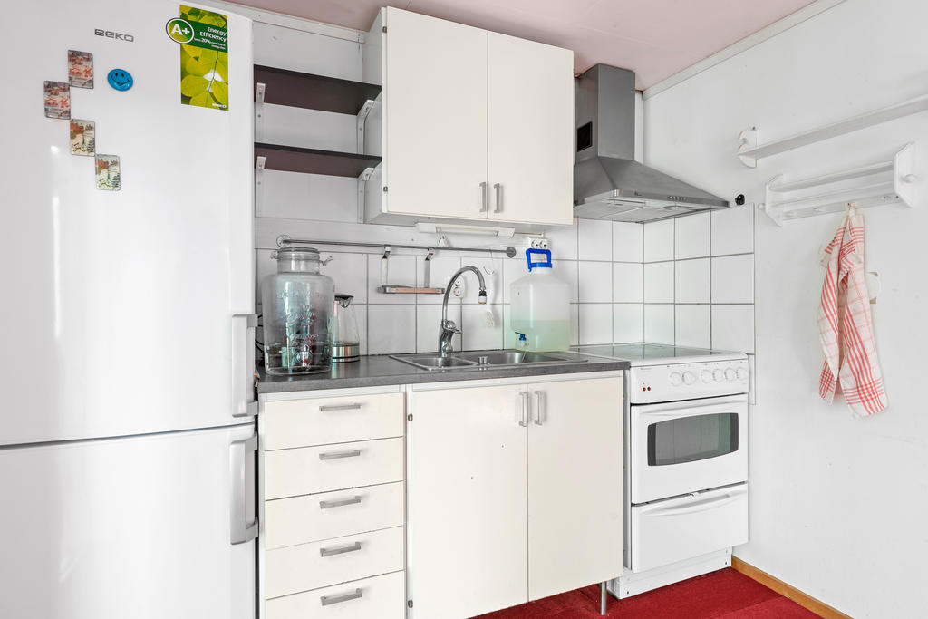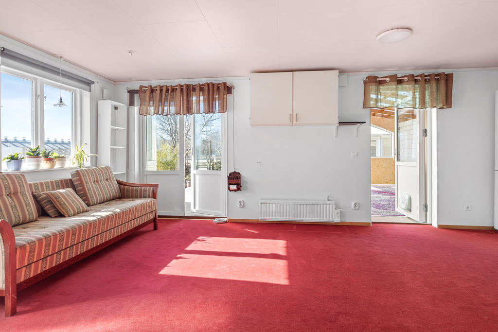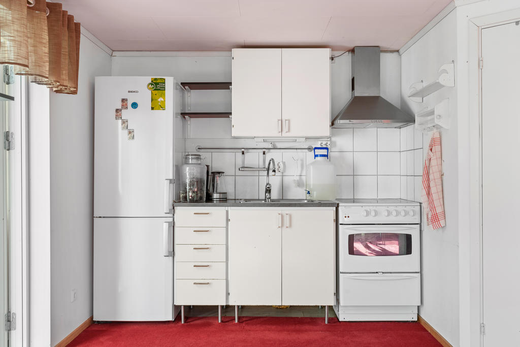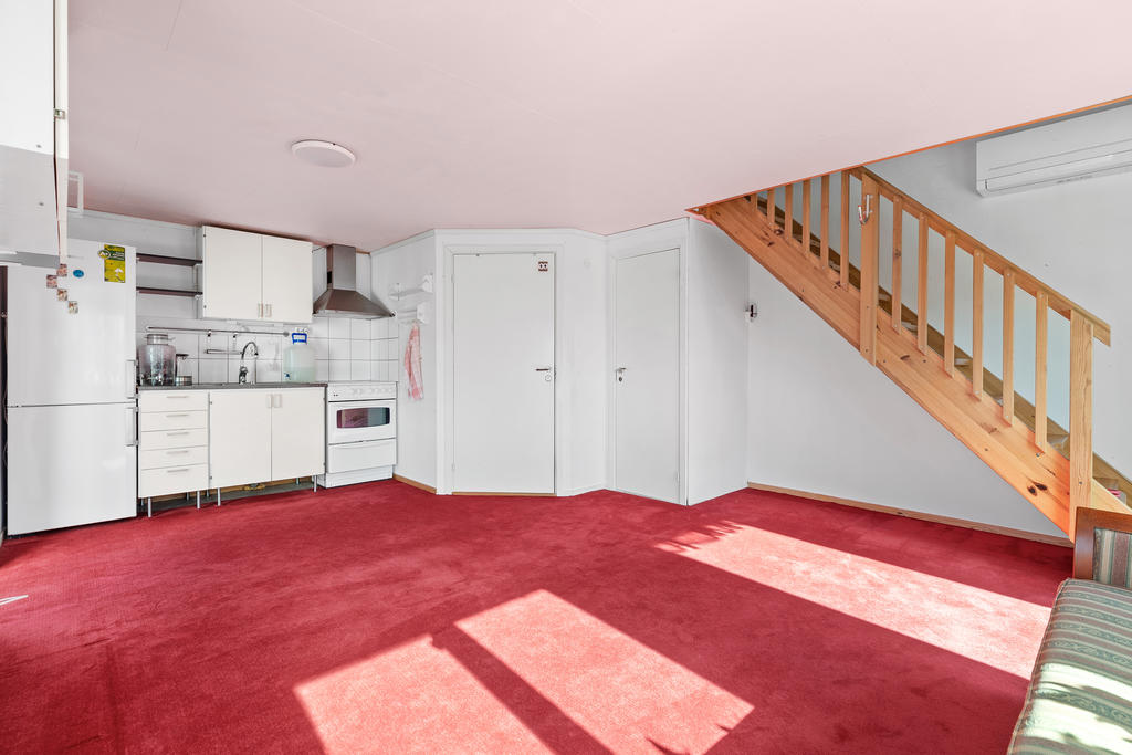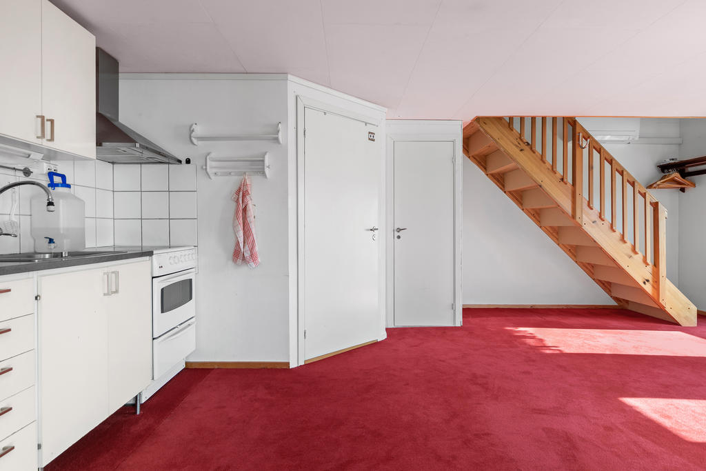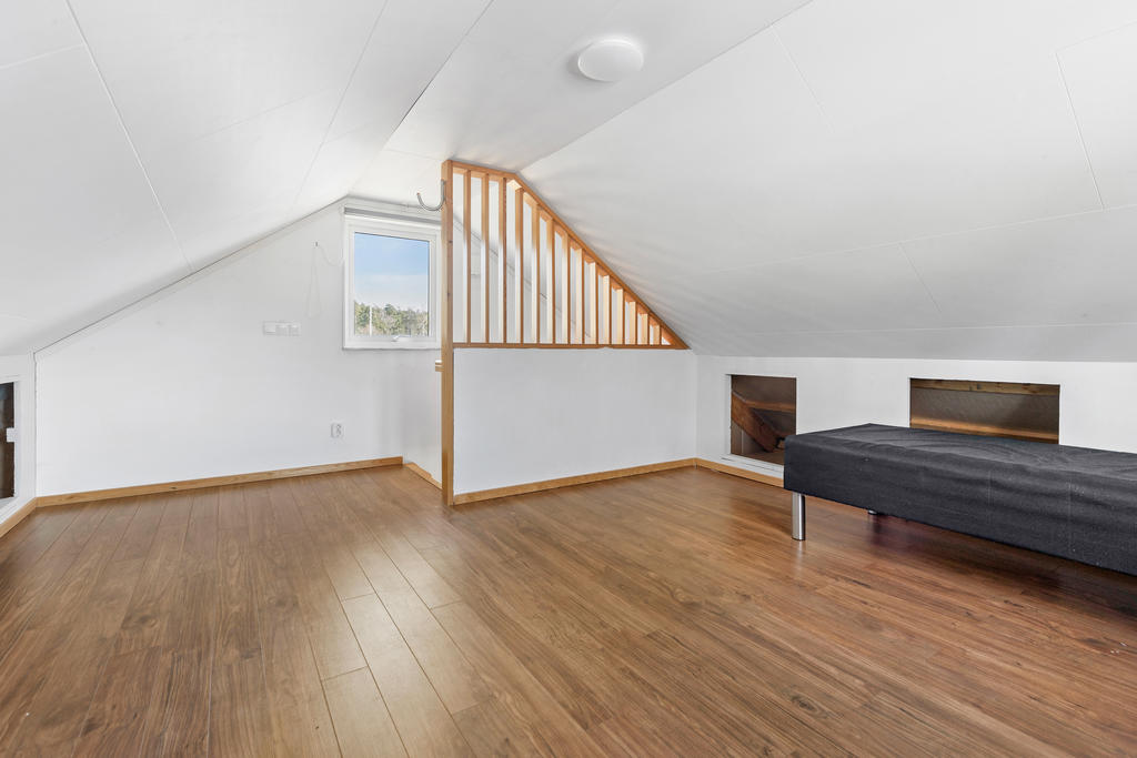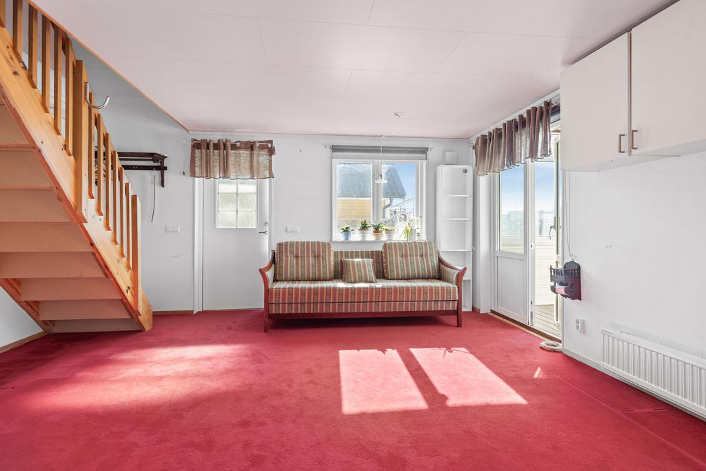 På nedre plan har vi ett vardagsrum med matplats och öppen planlösning mot köket. Här finns också ett badrum med badkar och handfat. Stugan är vinterbonad, vilket ger er möjlighet till helårs nyttjande.