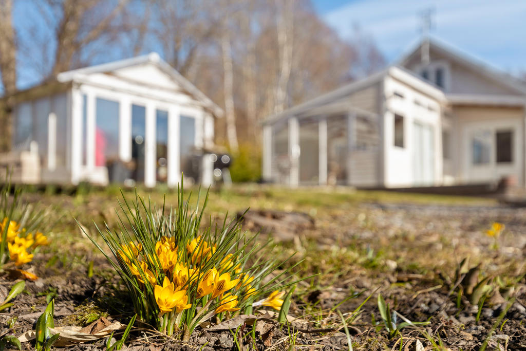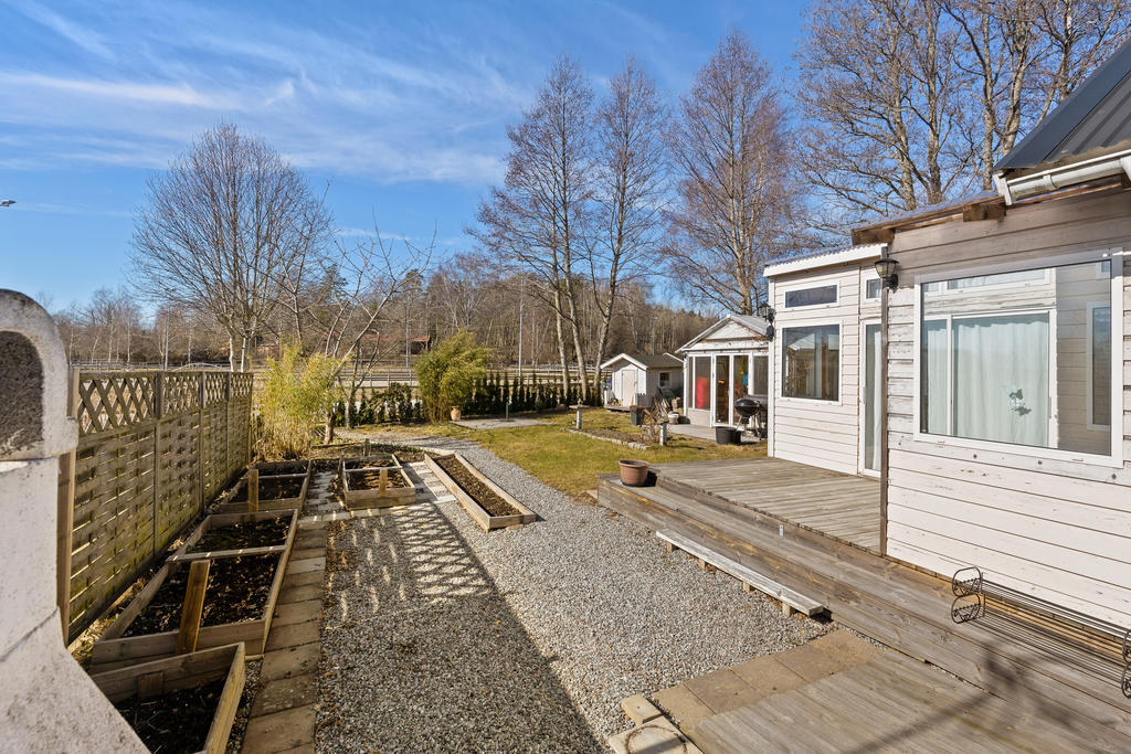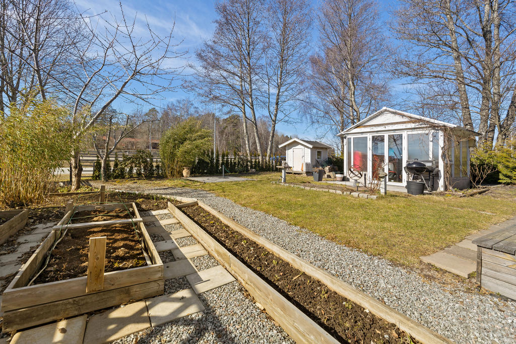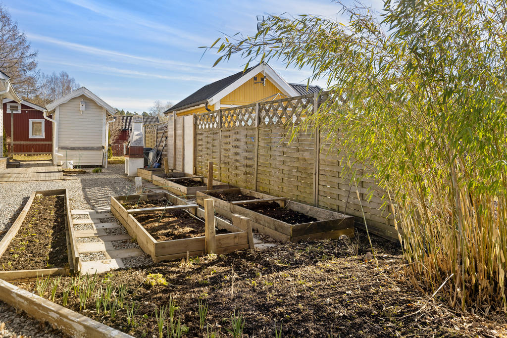 Väl i trädgården finns det flera platser för vila och odling. Med lite gröna fingrar och kärlek så finns det mycket fina växter som pryder tomten.
