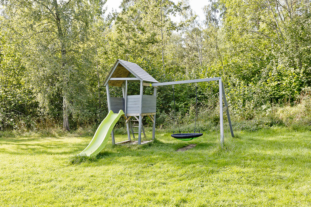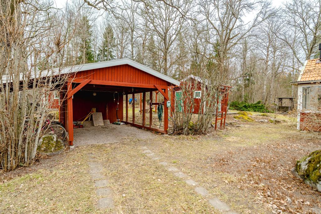 På tomten finns även en separat sovstuga med egen uteplats om cirka 12 kvm – perfekt för gäster eller tonåringar som vill ha sitt eget utrymme. Även denna byggnad är väl omhändertagen med nytt tak från 2022. Därtill finns en byggnad med bastu och dusch, där taket byttes 2021, samt en carport med nytt tak från samma år. För barnen finns en lekstuga och för det praktiska gott om förvaringsmöjligheter. Fastigheten har en god teknisk grund med en avloppsanläggning som anlades 2005 bestående av sluten tank för WC samt slamavskiljare med infiltration för gråvatten. Vattenprov har utförts så sent som i oktober 2024, vilket ger en extra trygghet för kommande ägare.