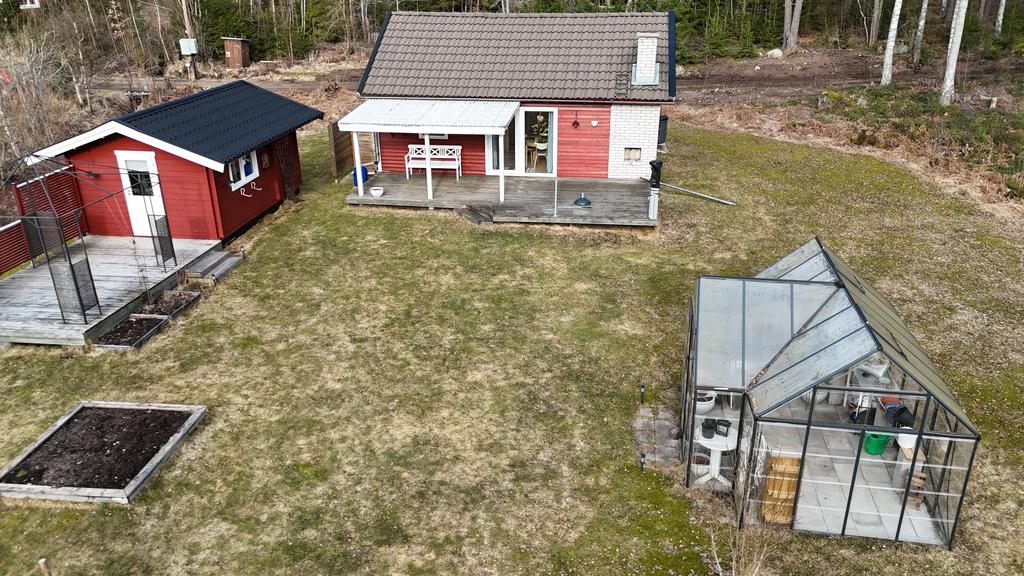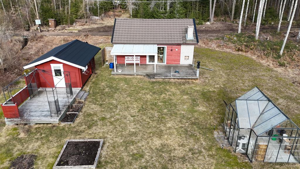 På tomten finns även en isolerad gäststuga med el, perfekt för övernattande gäster eller som extra utrymme. Den har dessutom en trevlig veranda samt en praktisk förrådsdel på baksidan.
