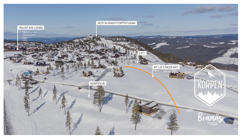 Så nu finns äntligen möjligheten att bygga sin drömstuga på det helt nya området Korpen i Branäs. På Korpen kommer de flesta stugorna att byggas med Ski in – Ski out och i området kommer även finnas skidlift samt ett eget snösystem. Området ligger på en liten höjd, och många av tomterna kommer att få en vacker utsikt och mycket goda solförhållanden. Den tidigare nämnda liften kommer att ge dig direktkontakt med hjärtat av Branäs skidsystem där tillgänglighet erbjuds till skidåkning som tillfredsställer såväl nybörjaren som den mer rutinerade åkaren. Korpen har ett av de bästa lägena i Branäs.
